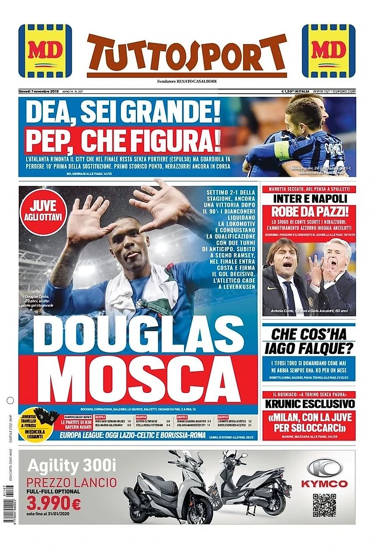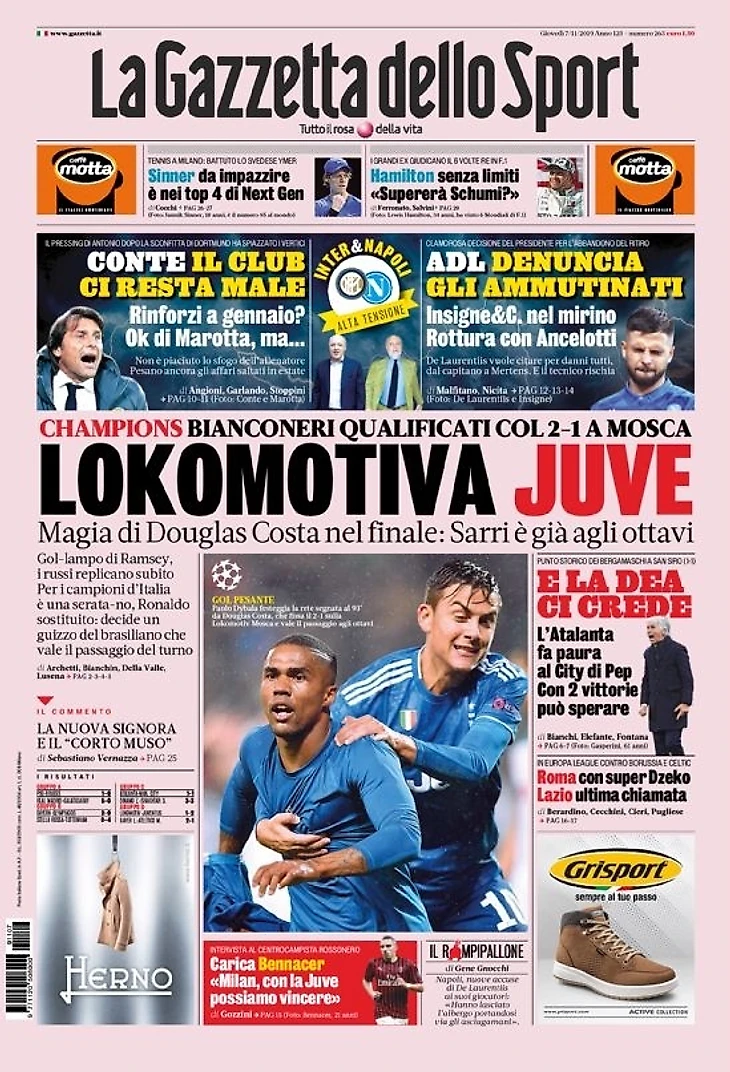 Локомотив «Юве». Заголовки Gazzetta и TuttoSport за 7 ноября