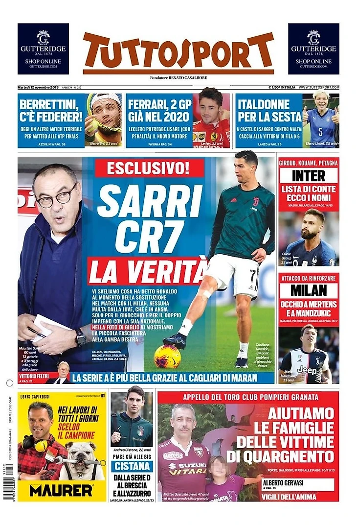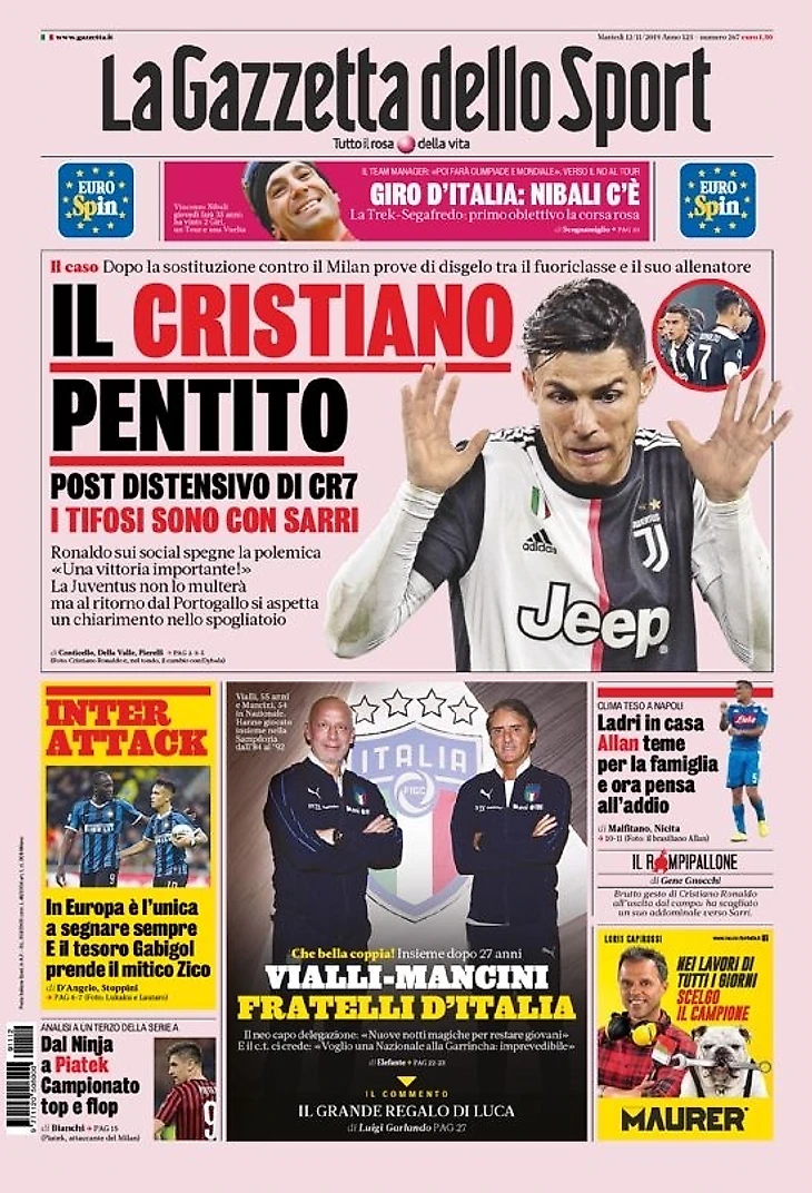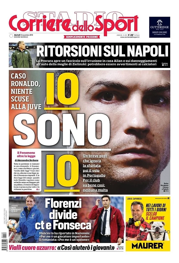 Я – это я. Заголовки Gazzetta, TuttoSport и Corriere за 12 ноября