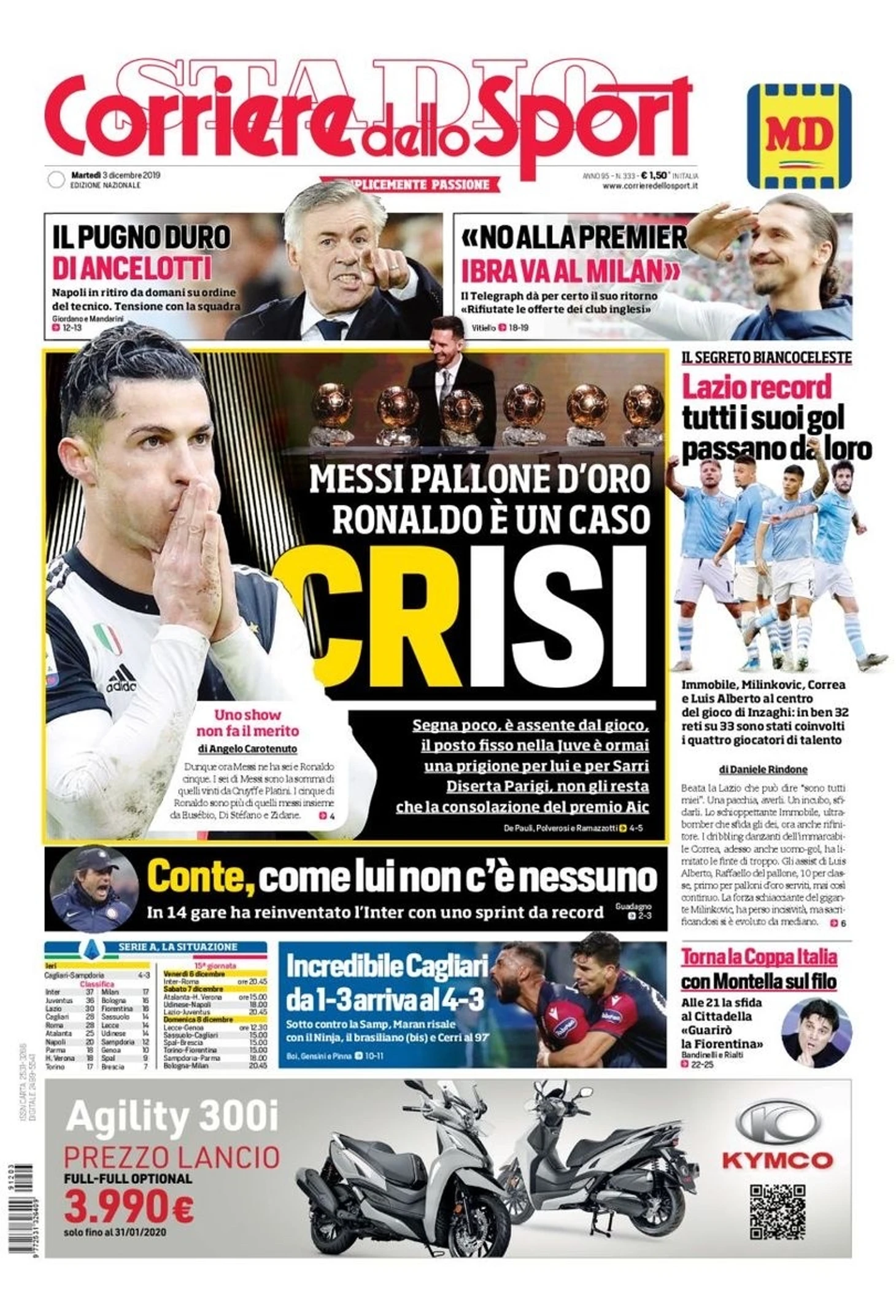 КРизис. Заголовки Gazzetta, TuttoSport и Corriere за 3 декабря