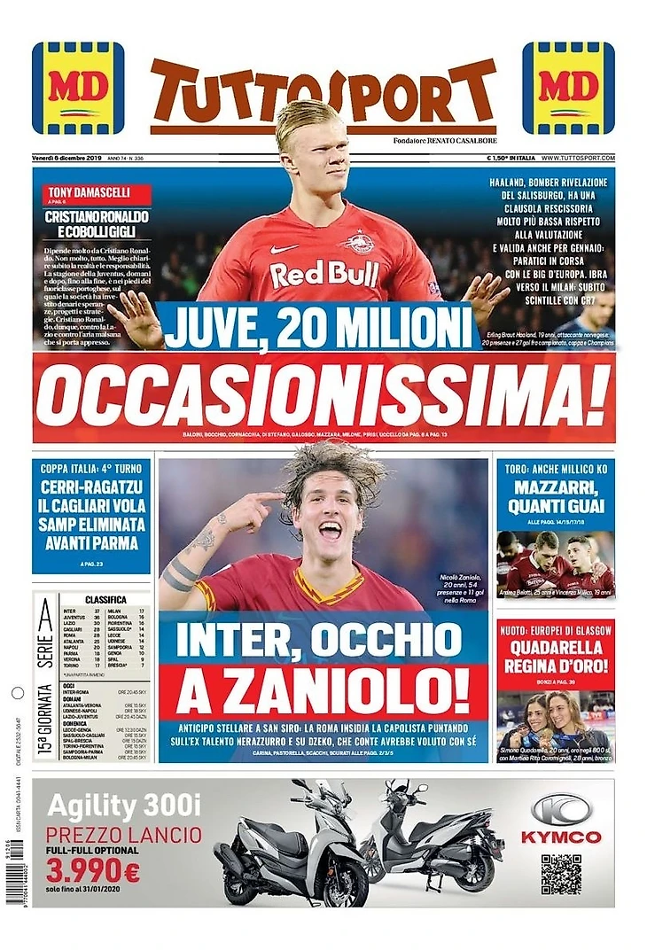«Юве», 20 миллионов. Холанд, бомбардир-открытие из «Зальцбурга», имеет отступные более низкие, по сравнению с его оценкой и действующие также в январе: Паратичи в борьбе с топ-клубами Европы. Ибра движется к «Милану»: сразу искры с CR7.