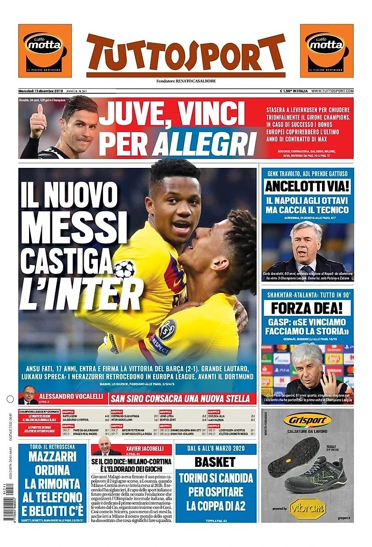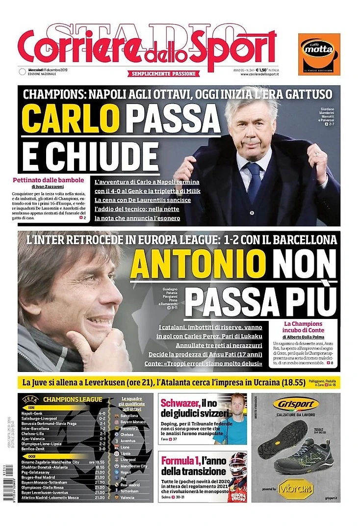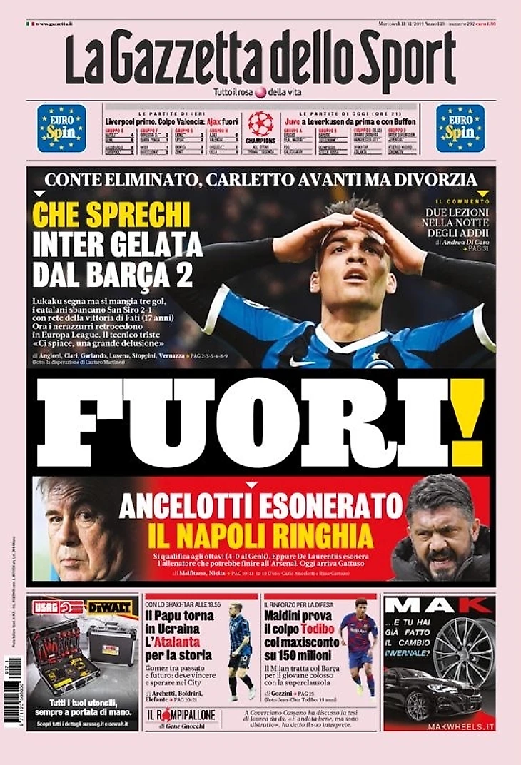 Вылетели! Заголовки Gazzetta, TuttoSport и Corriere за 11 декабря