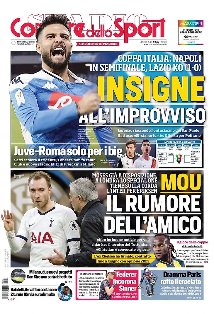 Инсинье врасплох. Заголовки Gazzetta, TuttoSport и Corriere за 22 января