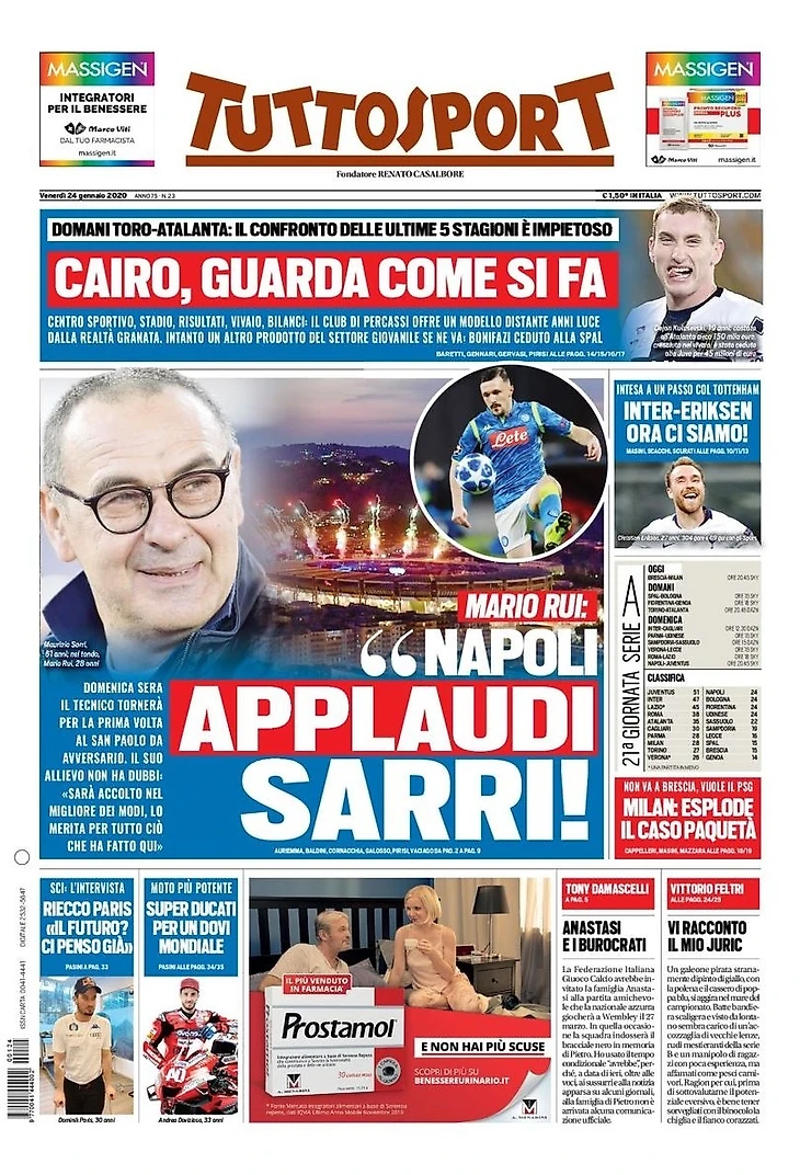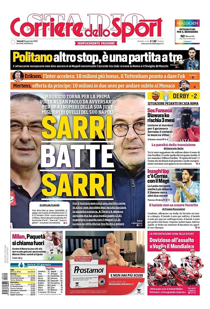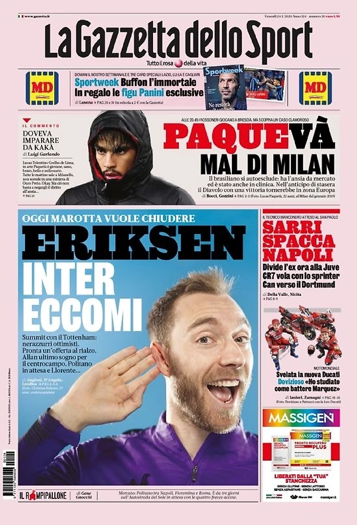 Эриксен: «Интер», вот и я. Заголовки Gazzetta, TuttoSport и Corriere за 24 января