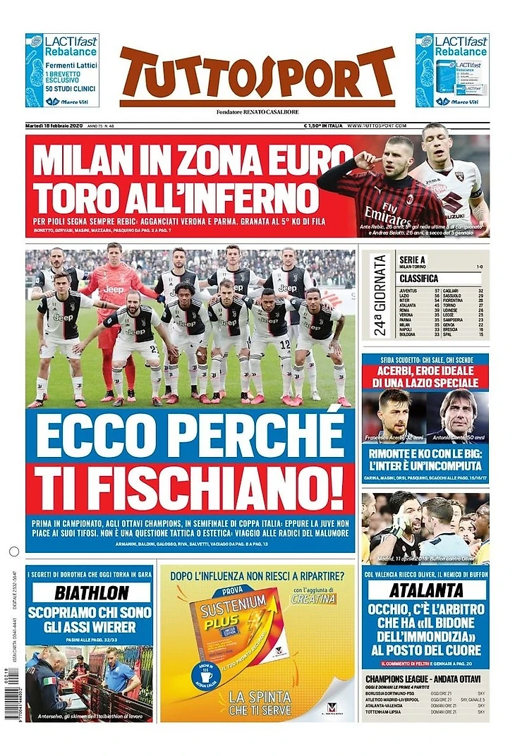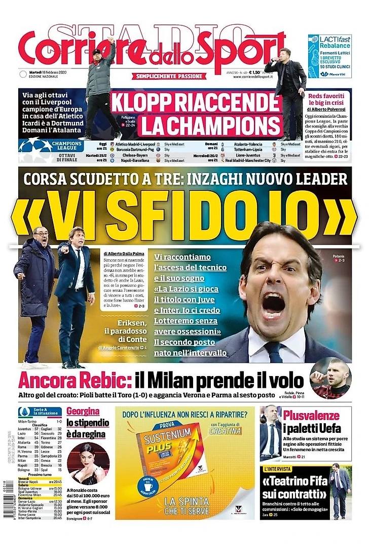 «С вами сражусь я». Заголовки Gazzetta, TuttoSport и Corriere за 18 февраля