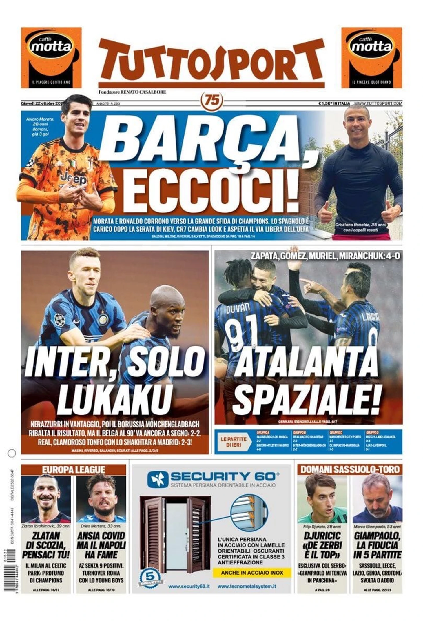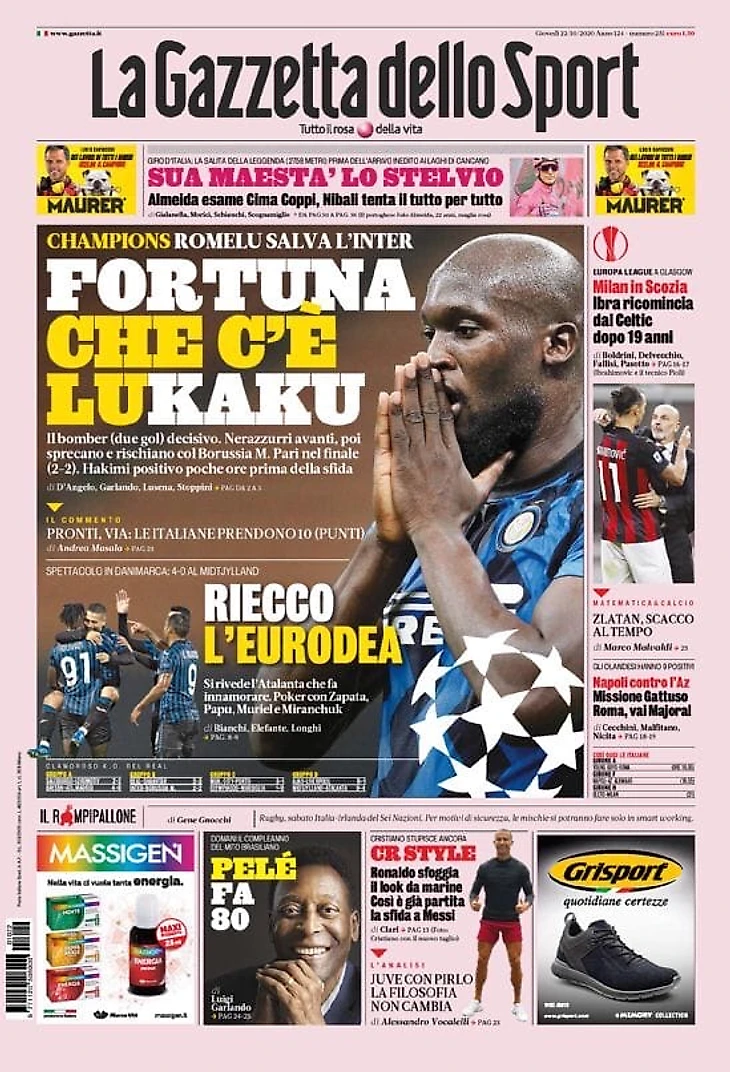 «Интер», ушедший от поражения в матче с «Боруссией» благодаря Лукаку, «Аталанта», разгромившая «Мидтьюлланд», а также сегодняшние матчи «Милана», «Ромы» и «Наполи» в Лиге Европы – в утреннем обзоре заголовков итальянских спортивных изданий в блоге «В гостях у Кальчо».