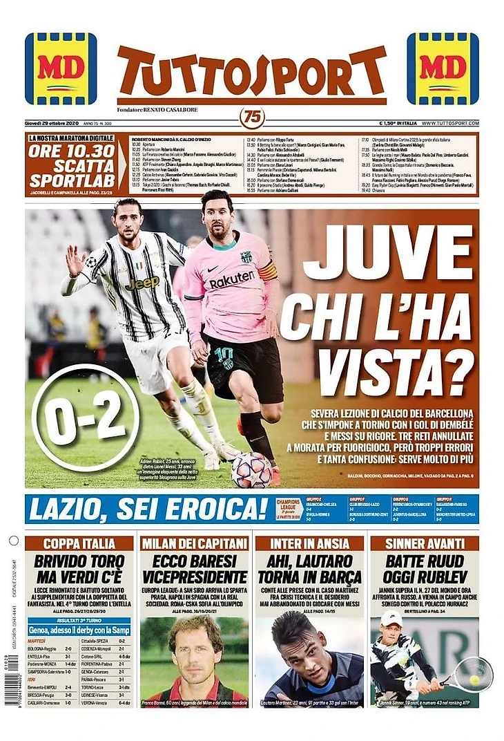 Суровый урок футбола от «Барселоны», которая выиграла в Турине благодаря голам Дембеле и Месси с пенальти. Три отменённых гола у Мораты из-за офсайда. Однако слишком много ошибок и столько неразберихи: требуется гораздо большее.