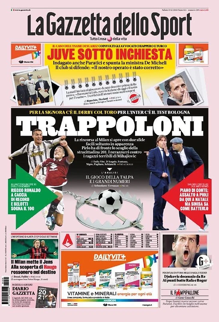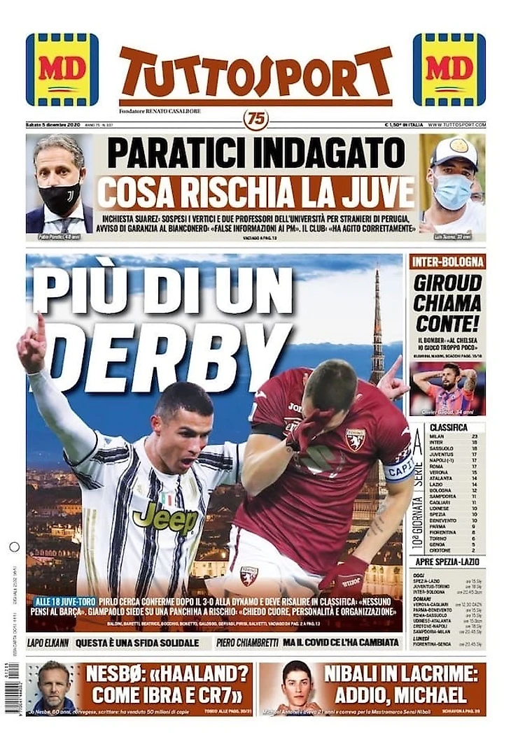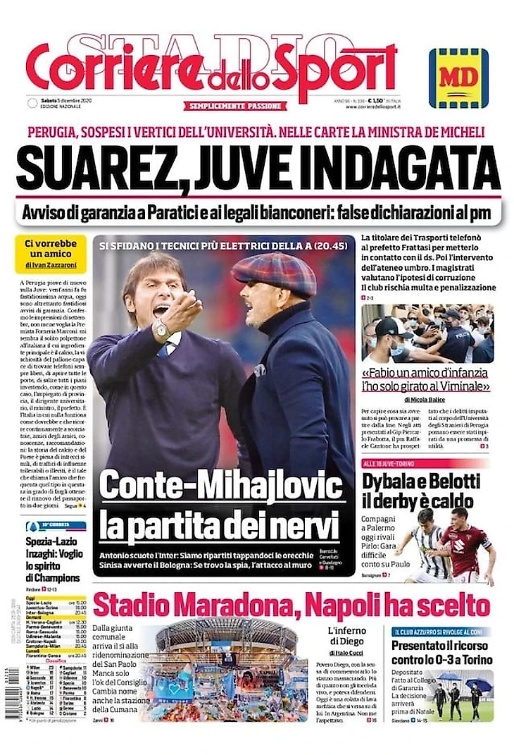 Матчи «Юве» с «Торино» и «Интера» с «Болоньей», а также новые детали следствия по делу об экзамене Суареса – в утреннем обзоре заголовков итальянских спортивных изданий в блоге «В гостях у Кальчо».