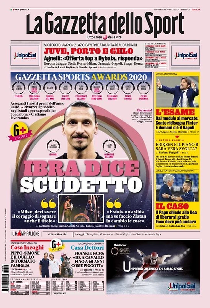 Ибра говорит Скудетто. Заголовки Gazzetta, TuttoSport и Corriere за 15 декабря