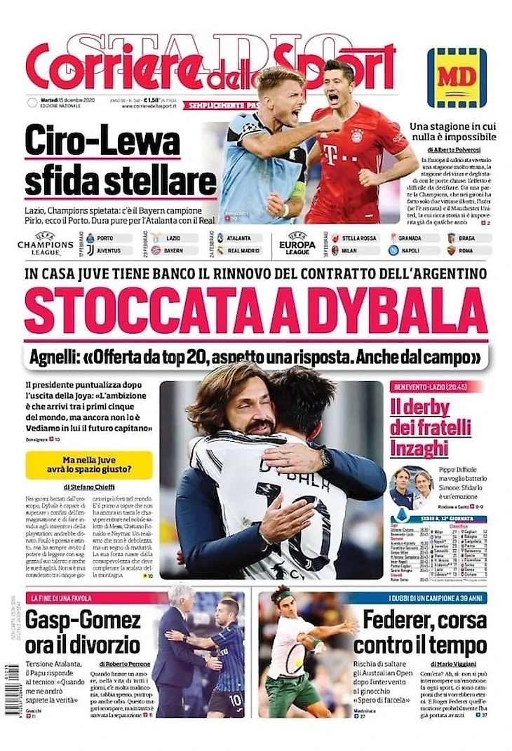 Аньелли: «Топовое предложение для Дибалы, пусть отвечает». Жеребьёвка Лиги Чемпионов: «Лацио»-«Бавария» и «Аталанта»-«Реал» до мурашек. Лига Европы: «Црвена Звезда»-«Милан», «Гранада»-«Наполи», «Брага»-«Рома».