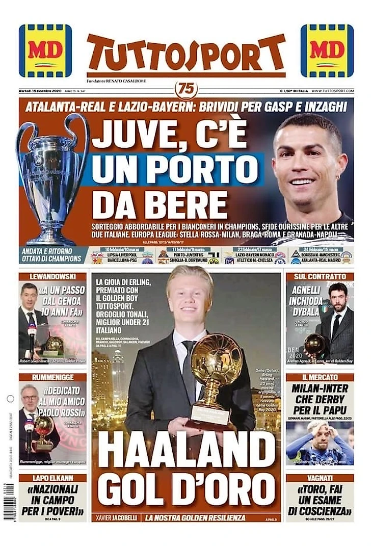 Радость Эрлинга, получившего награду Golden Boy от TuttoSport. Гордость Тонали, лучшего итальянского игрока до 21 года.