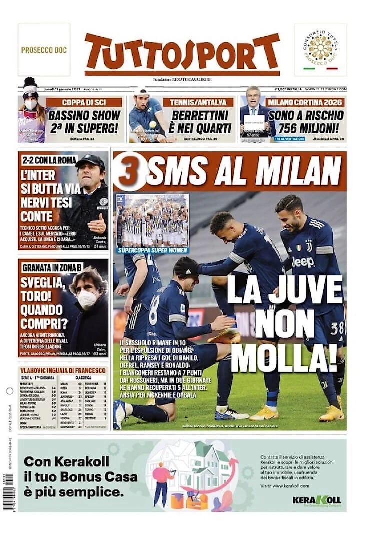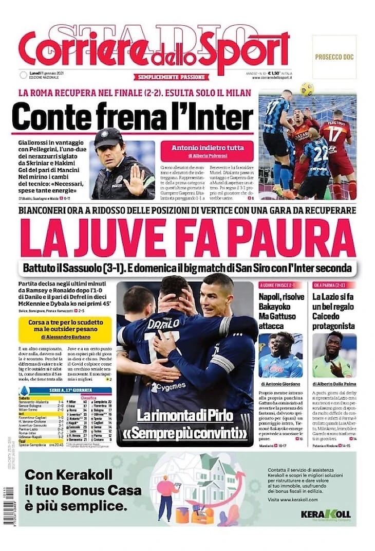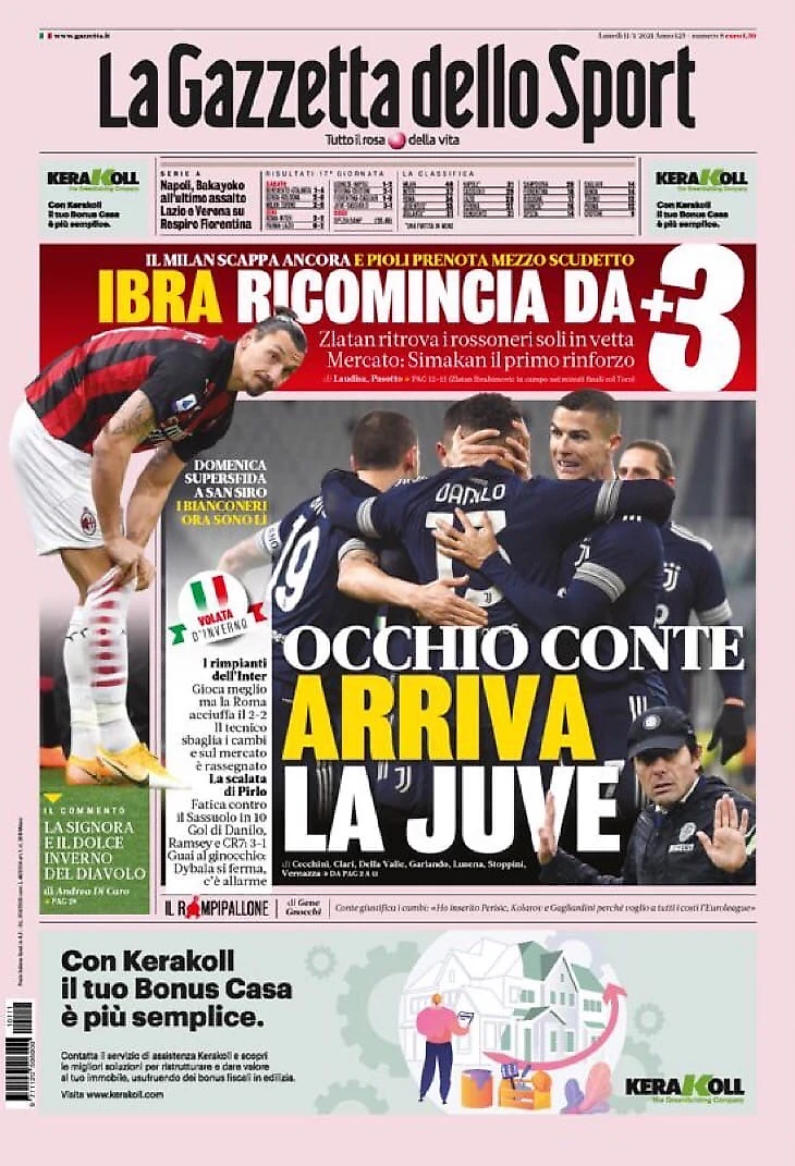 «Юве» наводит страх. Заголовки Gazzetta, TuttoSport и Corriere за 11 января