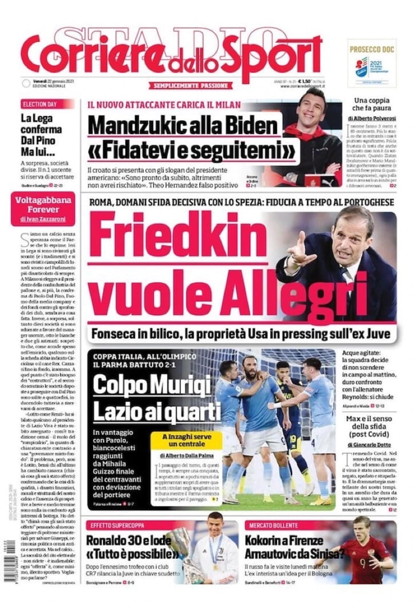 Фридкин хочет Аллегри. Заголовки Gazzetta, TuttoSport и Corriere за 22 января