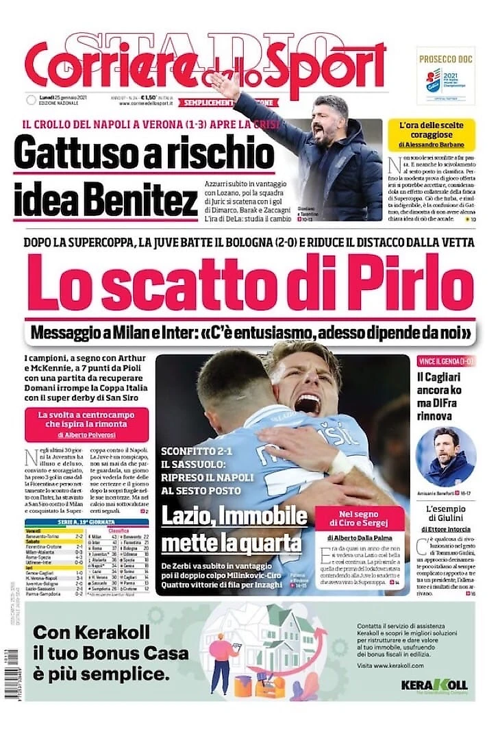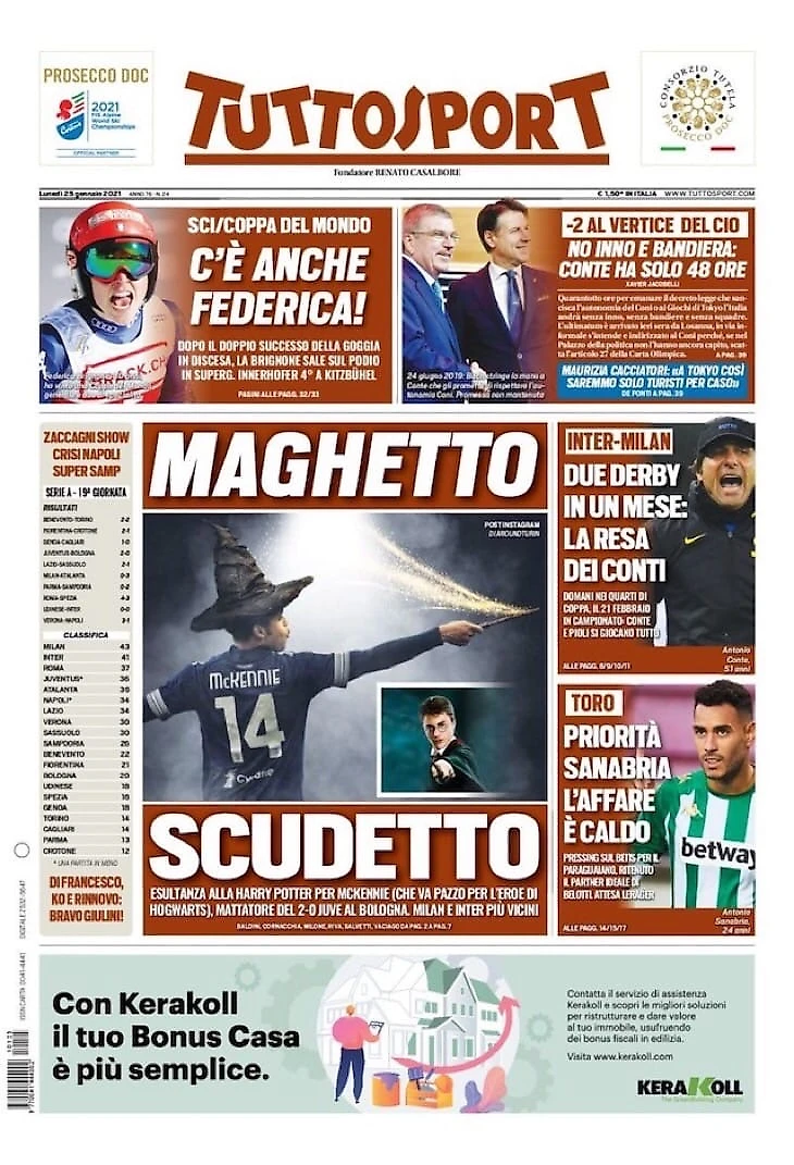 Волшебник Скудетто. Заголовки Gazzetta, TuttoSport и Corriere за 25 января