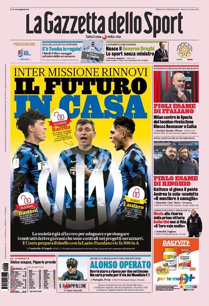 Риск Гаттузо. Заголовки Gazzetta, TuttoSport и Corriere за 13 февраля