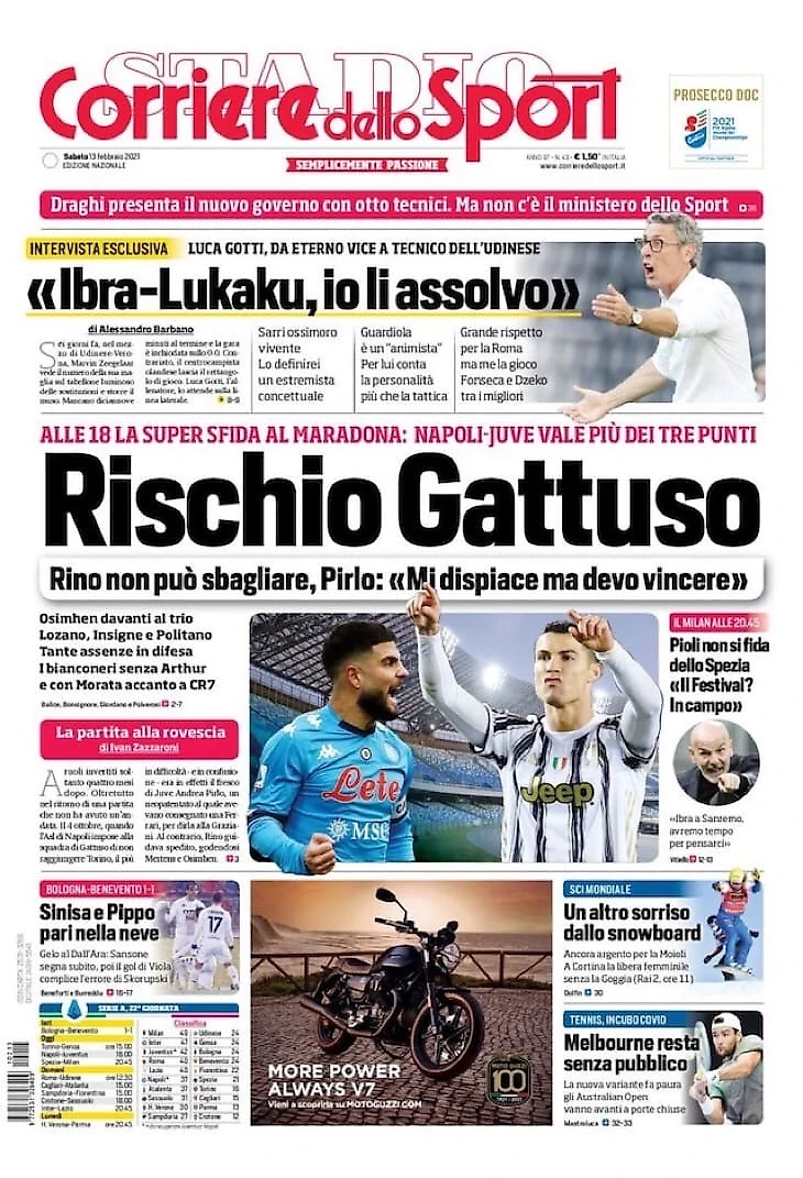 Сегодняшний матч «Наполи» с «Ювентусом», а также игры «Милана» со «Специей» и «Торино» с «Дженоа» – в утреннем обзоре заголовков итальянских спортивных изданий в блоге «В гостях у Кальчо».