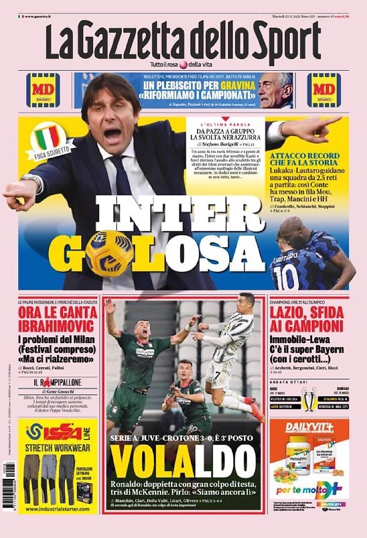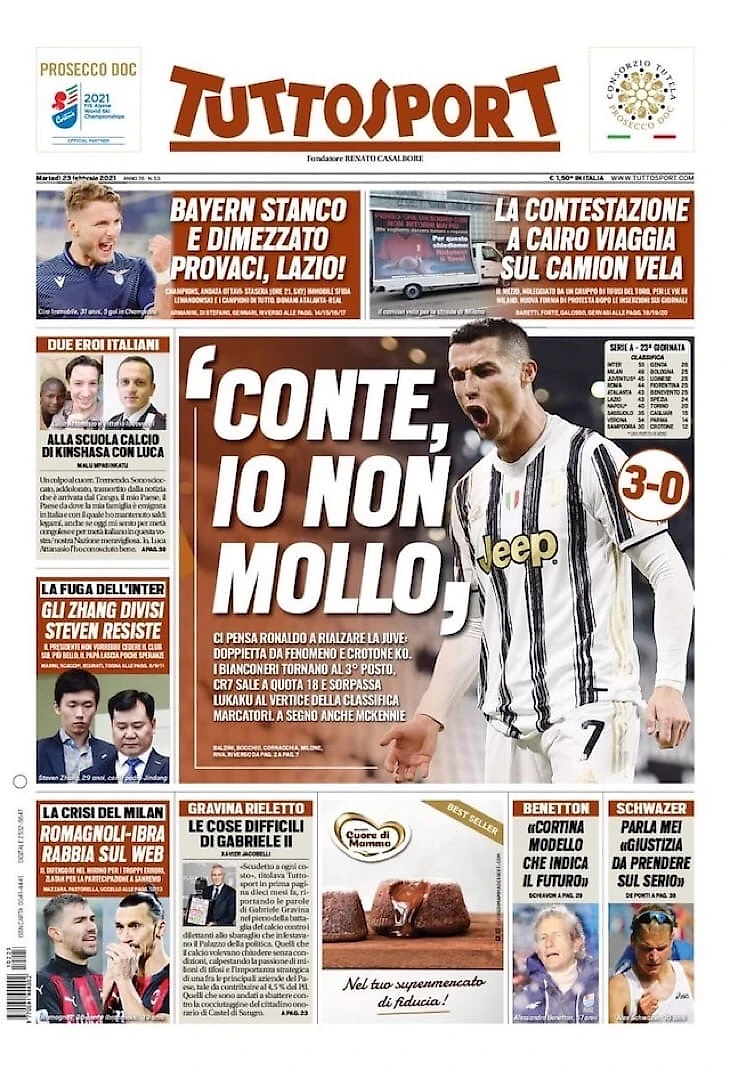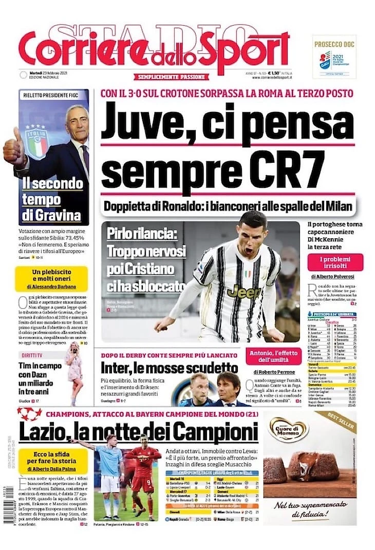 «Юве», об этом как всегда позаботится CR7. Заголовки Gazzetta, TuttoSport и Corriere за 23 февраля