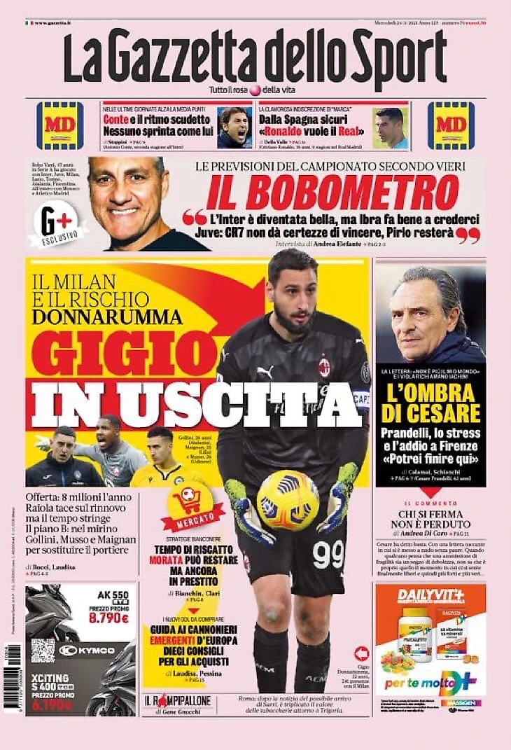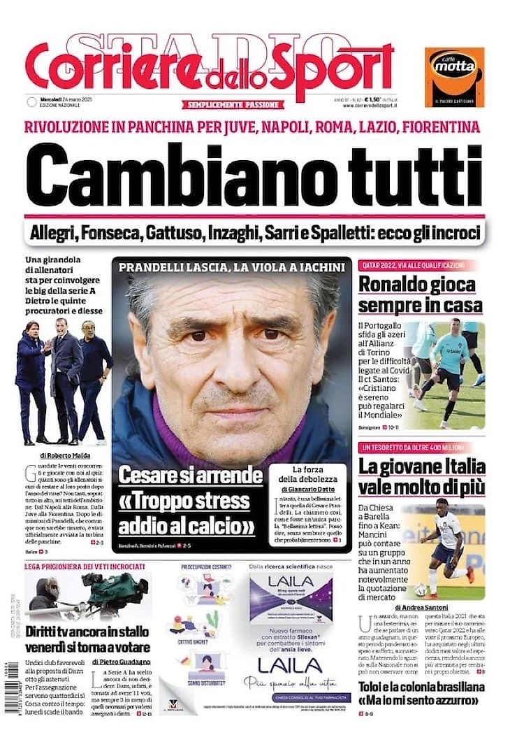 Меняются все. Заголовки Gazzetta, TuttoSport и Corriere за 24 марта