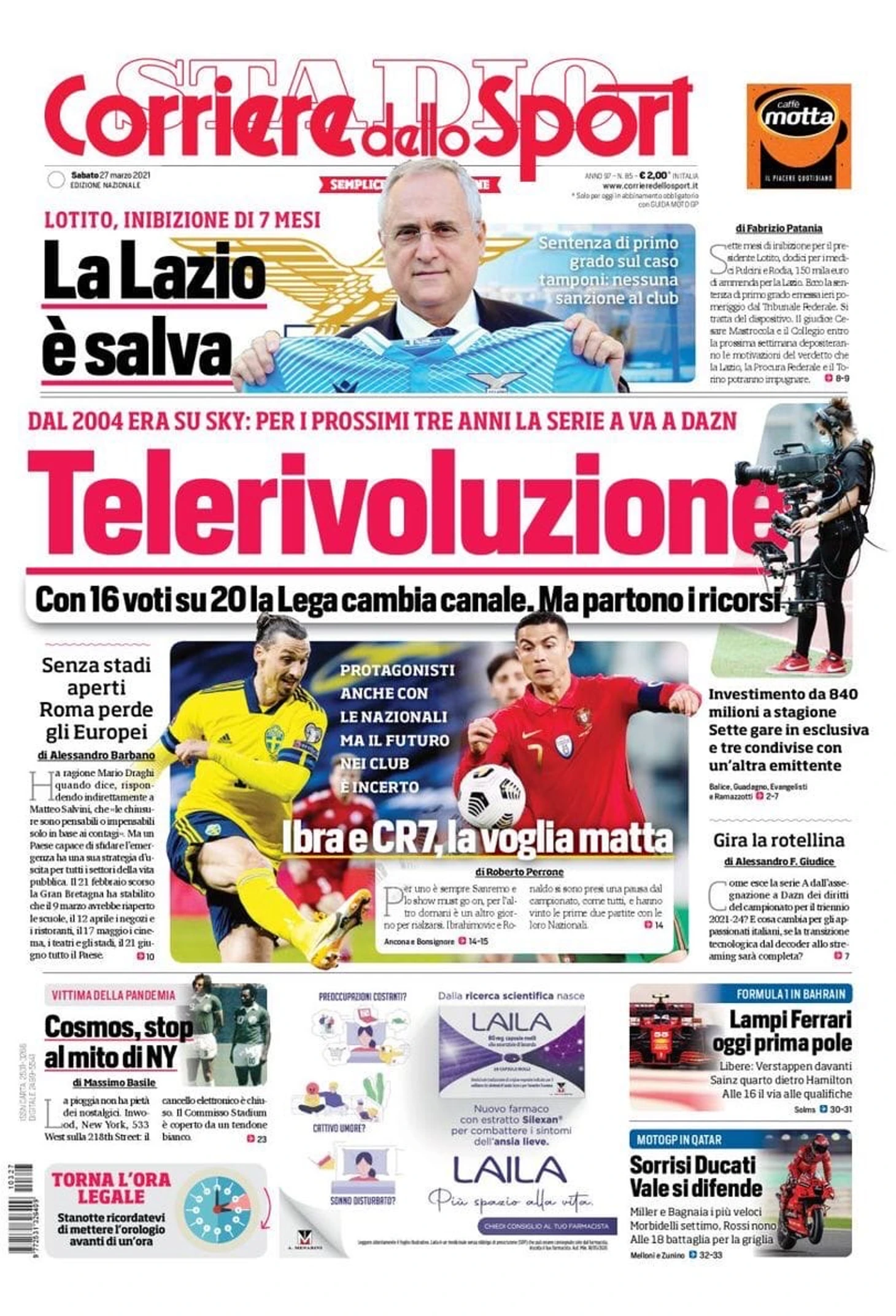 Лицо для «Интера». Заголовки Gazzetta, TuttoSport и Corriere за 27 марта