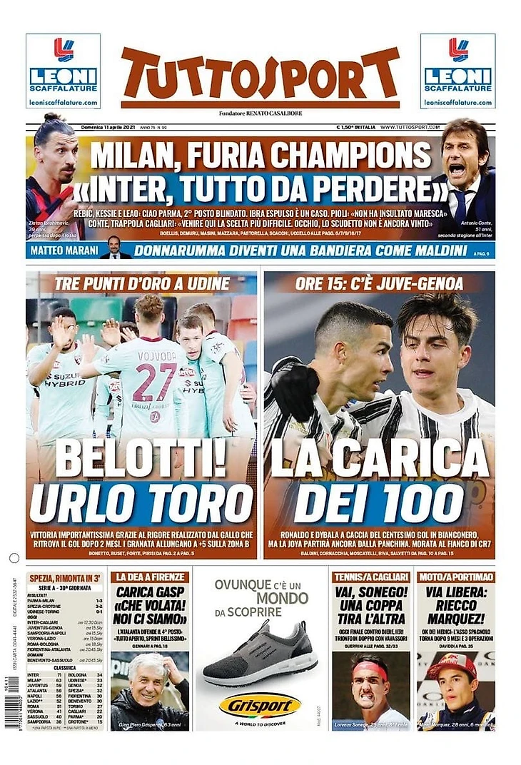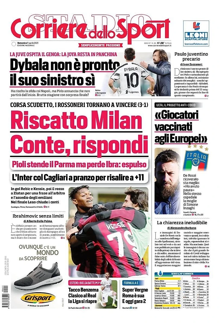 Борьба за Скудетто, Россонери вернулись к победам (3:1). Пиоли остановил «Парму», но потерял Ибру: он удалён. «Интер» с «Кальяри» в обед, чтобы подняться на +11. Забили Ребич и Кессье, затем красная Златану за фразу в адрес арбитра и штурм эмилианцев. В концовке Леау закрыл счёт.