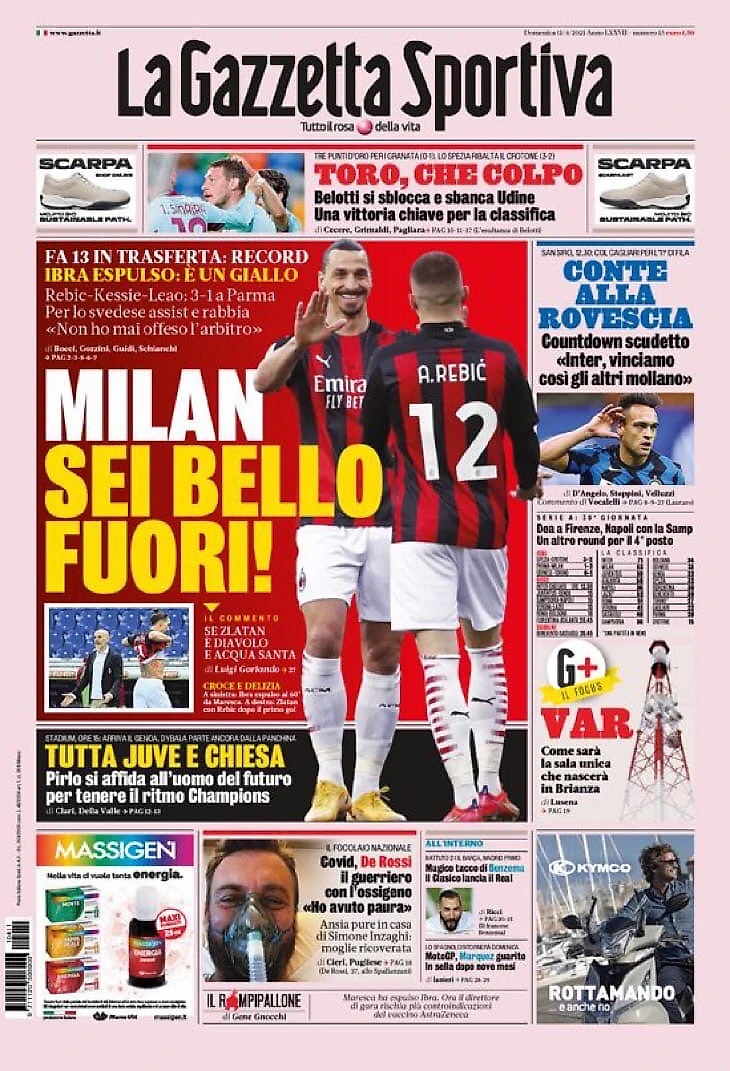Успех «Милана» с «Пармой», несмотря на удаление Ибры, победа «Торино» над «Удинезе», а также сегодняшние матчи «Аталанты», «Интера» и «Ювентуса» – в утреннем обзоре заголовков итальянских спортивных изданий в блоге «В гостях у Кальчо».