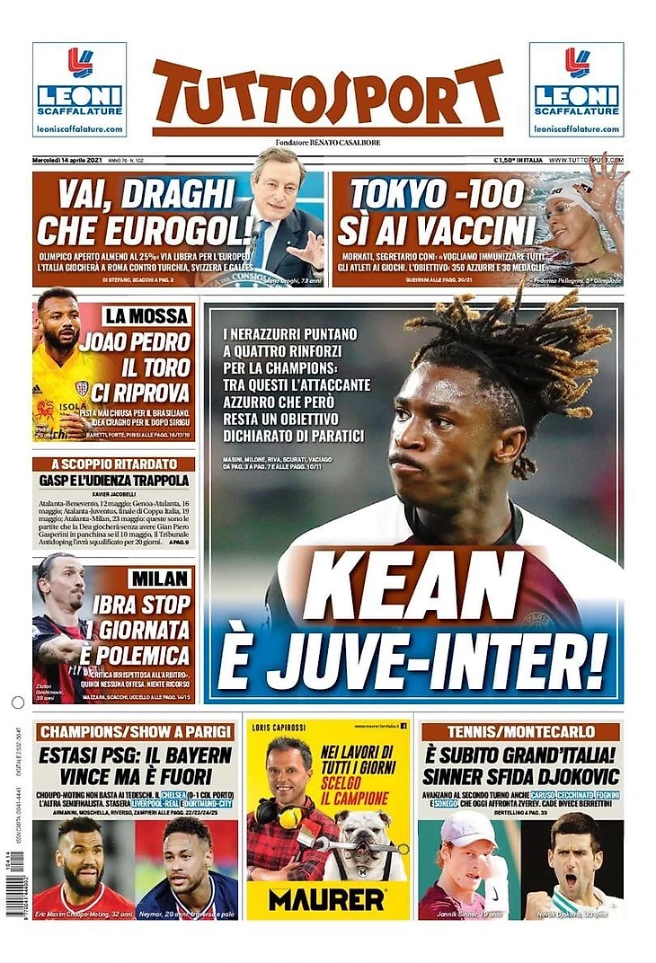Возвращение болельщиков на стадионы в Италии, а также интерес к Кину от «Юве» и «Интера» – в утреннем обзоре заголовков итальянских спортивных изданий в блоге «В гостях у Кальчо».