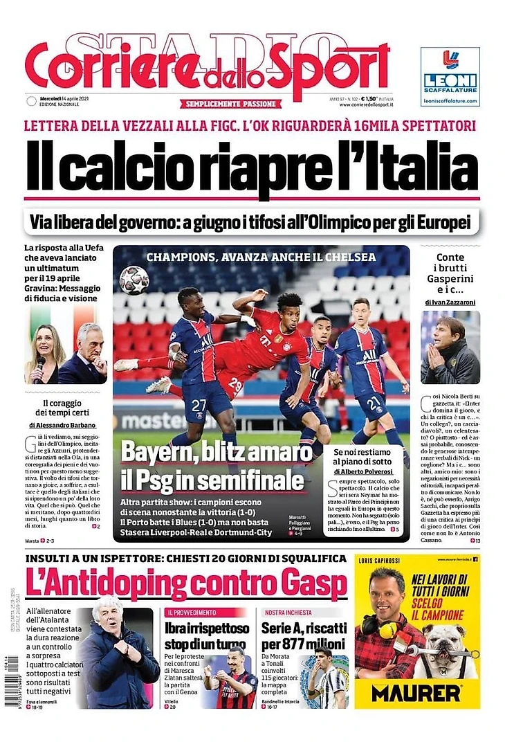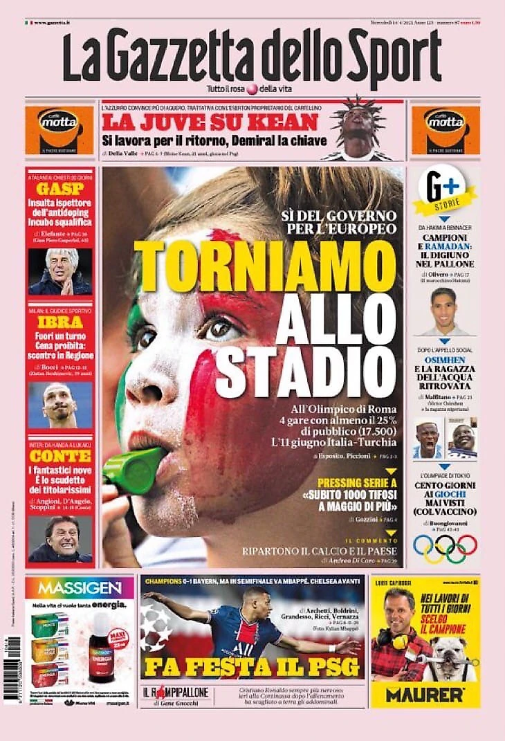Возвращаемся на стадионы. Заголовки Gazzetta, TuttoSport и Corriere за 14 апреля