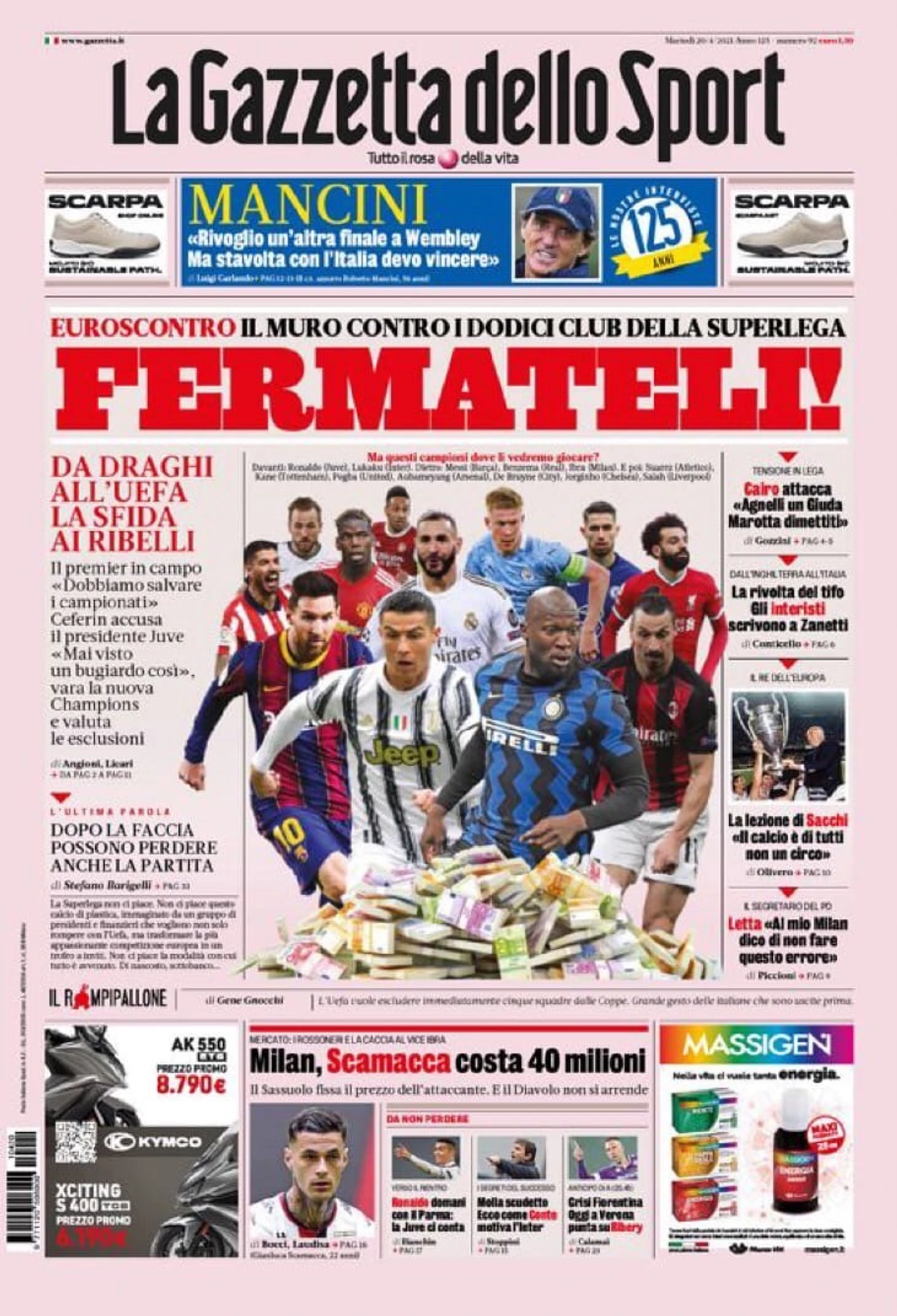 Остановите их! Заголовки Gazzetta, TuttoSport и Corriere за 20 апреля