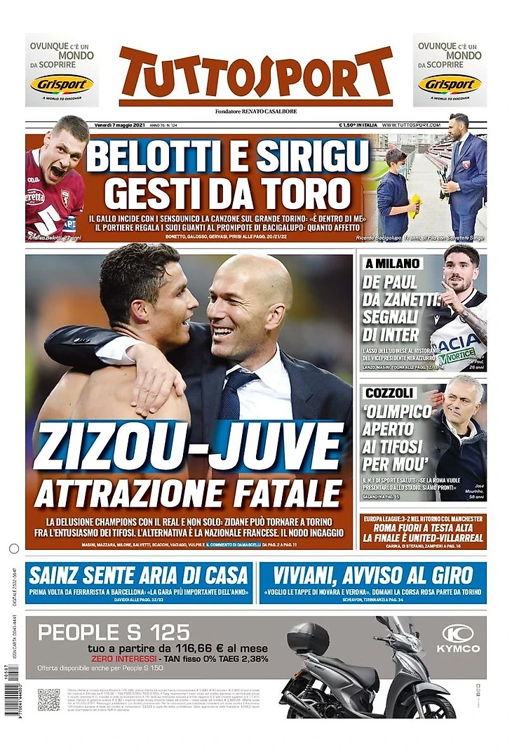 Зизу-«Юве», роковое притяжение. Заголовки Gazzetta, TuttoSport и Corriere за 7 мая