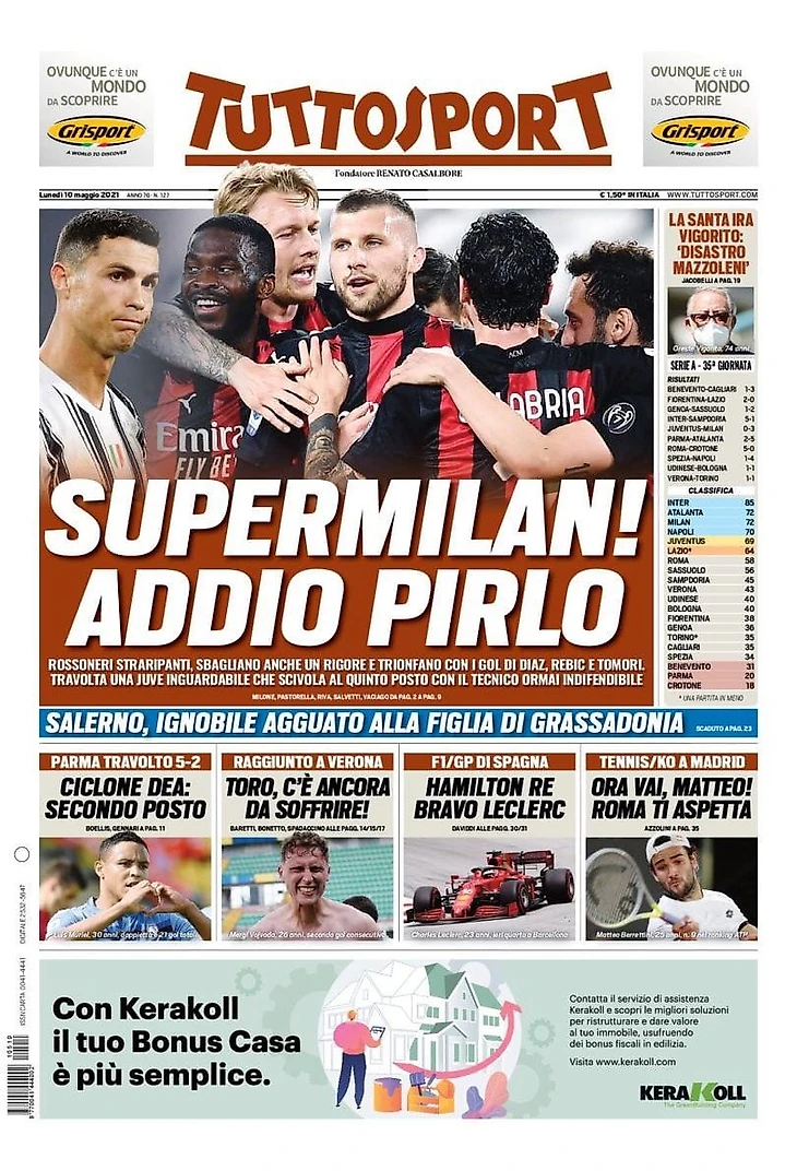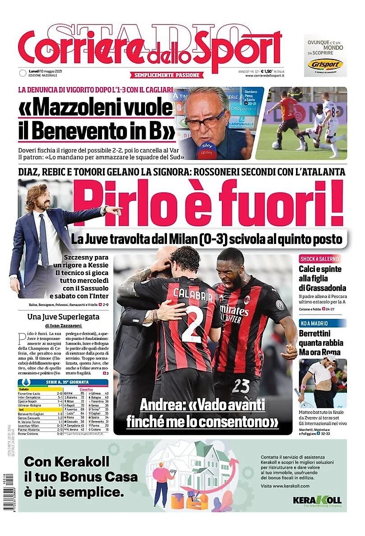 Россонери достойны Лиги Чемпионов: 3:0. Бьянконери – пятые. «Юве» разбит, опасаясь невероятного исключения. Пиоли идеален. Диас, Ребич и Томори забили. Ибра травмировался. Пирло: «Продолжаю, пока могу». Но его судьба предрешена.