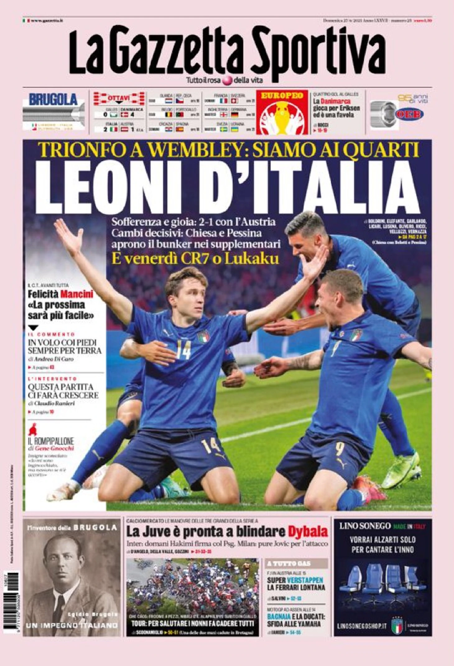 Не будите нас! Заголовки Gazzetta, TuttoSport и Corriere за 27 июня
