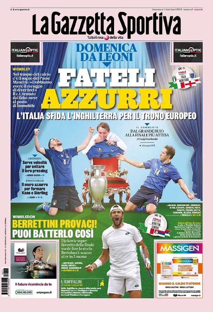 За вас, за нас! Заголовки Gazzetta, TuttoSport и Corriere за 11 июля