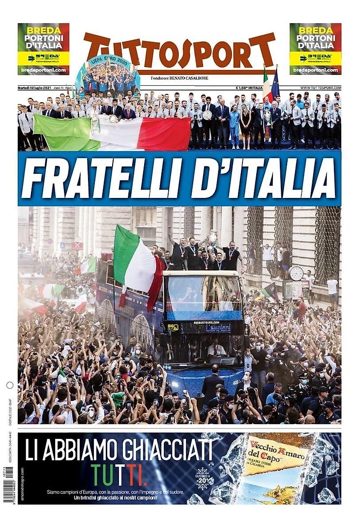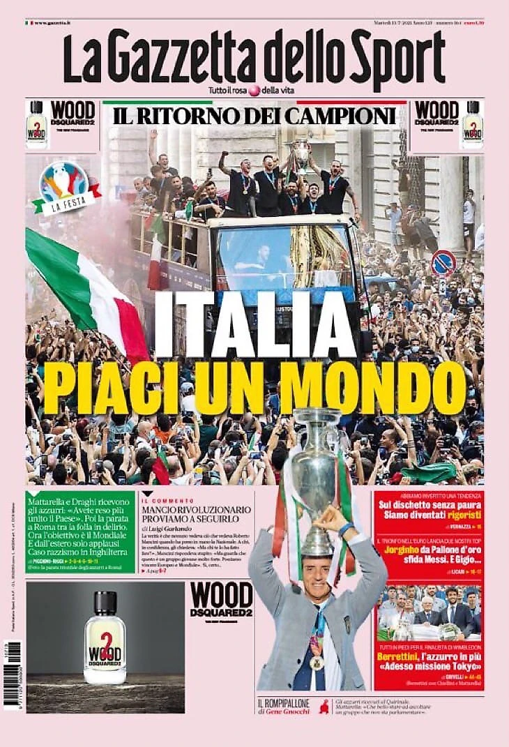 Большой праздник по возвращению Адзурри после триумфа на Чемпионате Европы. Благодарность Маттареллы и Драги: «Образец для всех». Команда и главный тренер (с Берреттини) в Квиринальском дворце и на площади Киджи, затем круг на открытом автобусе для публики.