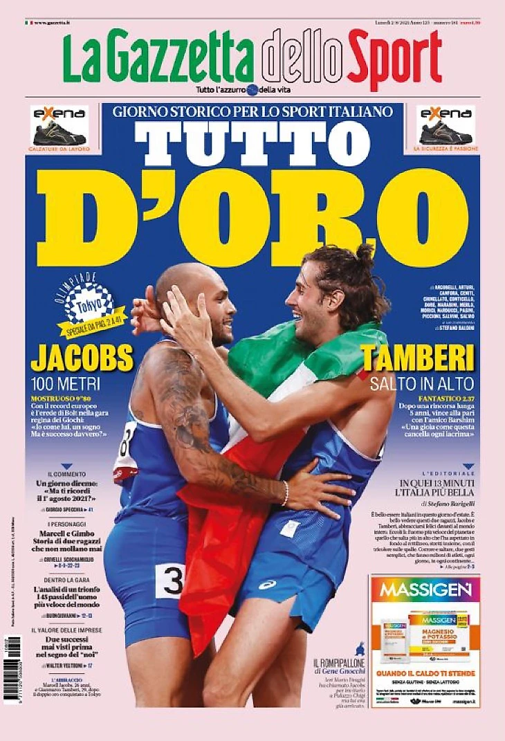 Золото! Заголовки Gazzetta, TuttoSport и Corriere за 2 августа