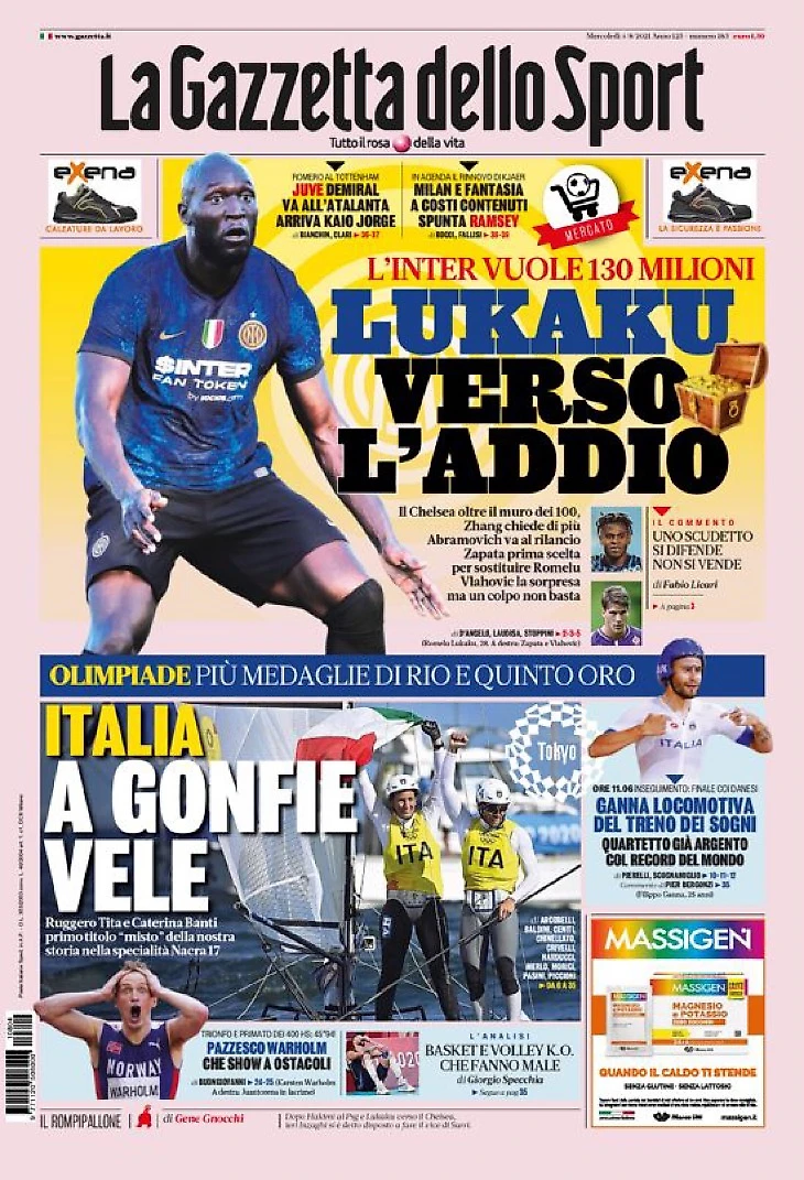 Лукаку, возможный уход. Заголовки Gazzetta, TuttoSport и Corriere за 4 августа