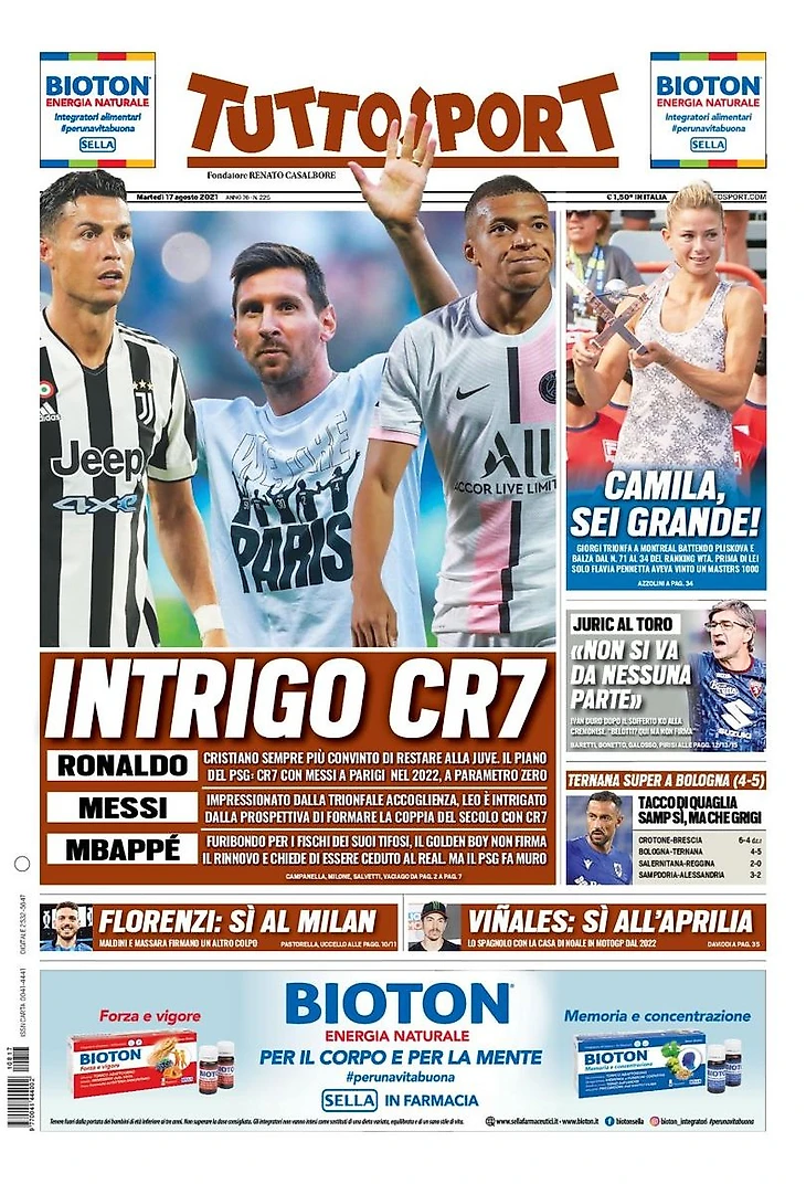 Роналду: Криштиану всё более убежден остаться в «Юве». План «ПСЖ»: CR7 с Месси в Париже в 2022 году, в качестве свободного агента. Месси: впечатлённый триумфальным приёмом, Лео заинтриговн перспективой сформировать пару Века с CR7. Мбаппе: разгневанный свистом своих болельщиков, Золотой Мальчик не подписал продление контракта и просит продать его в «Реал». Но «ПСЖ» возводит стену.