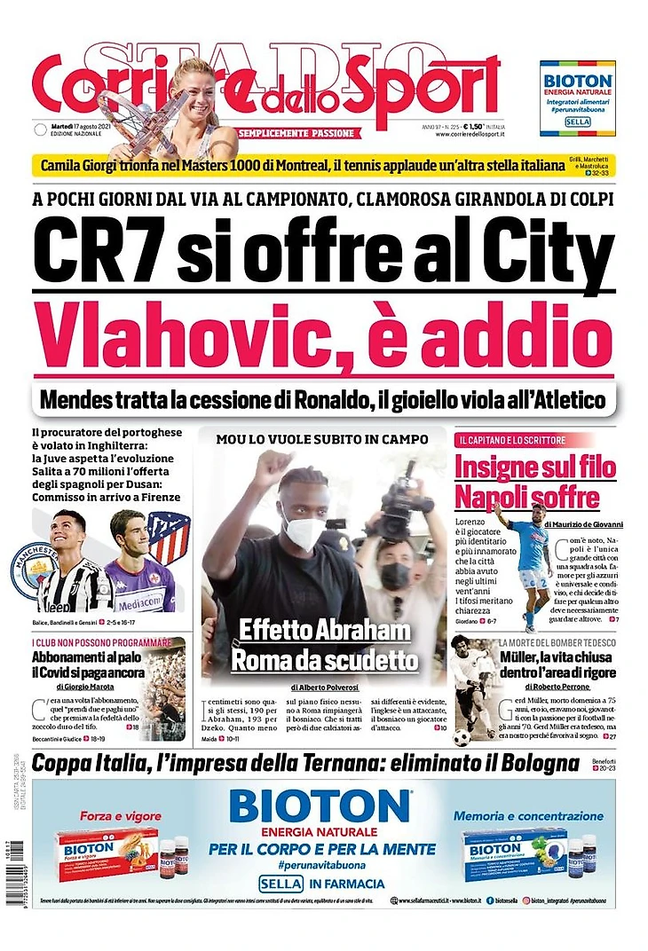 «Юве» выходит в поул-позицию. Заголовки Gazzetta, TuttoSport и Corriere за 17 августа