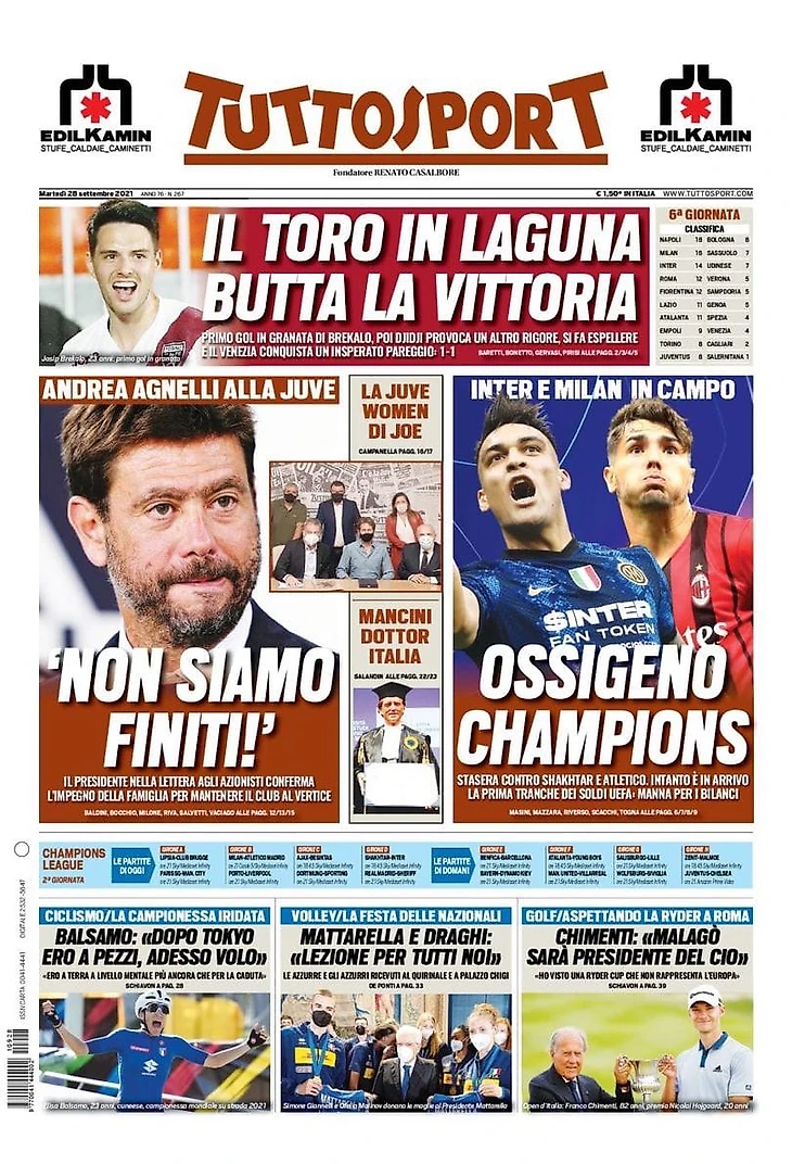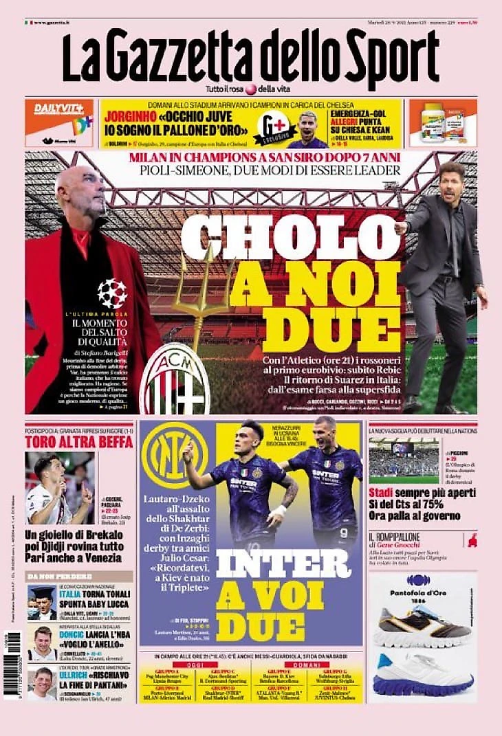Чоло для нас двоих. Заголовки Gazzetta, TuttoSport и Corriere за 28 сентября