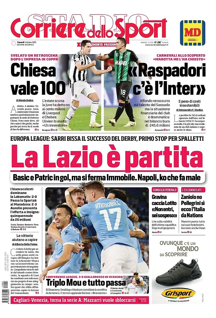 «Лацио», это матч. Заголовки Gazzetta, TuttoSport и Corriere за 1 октября