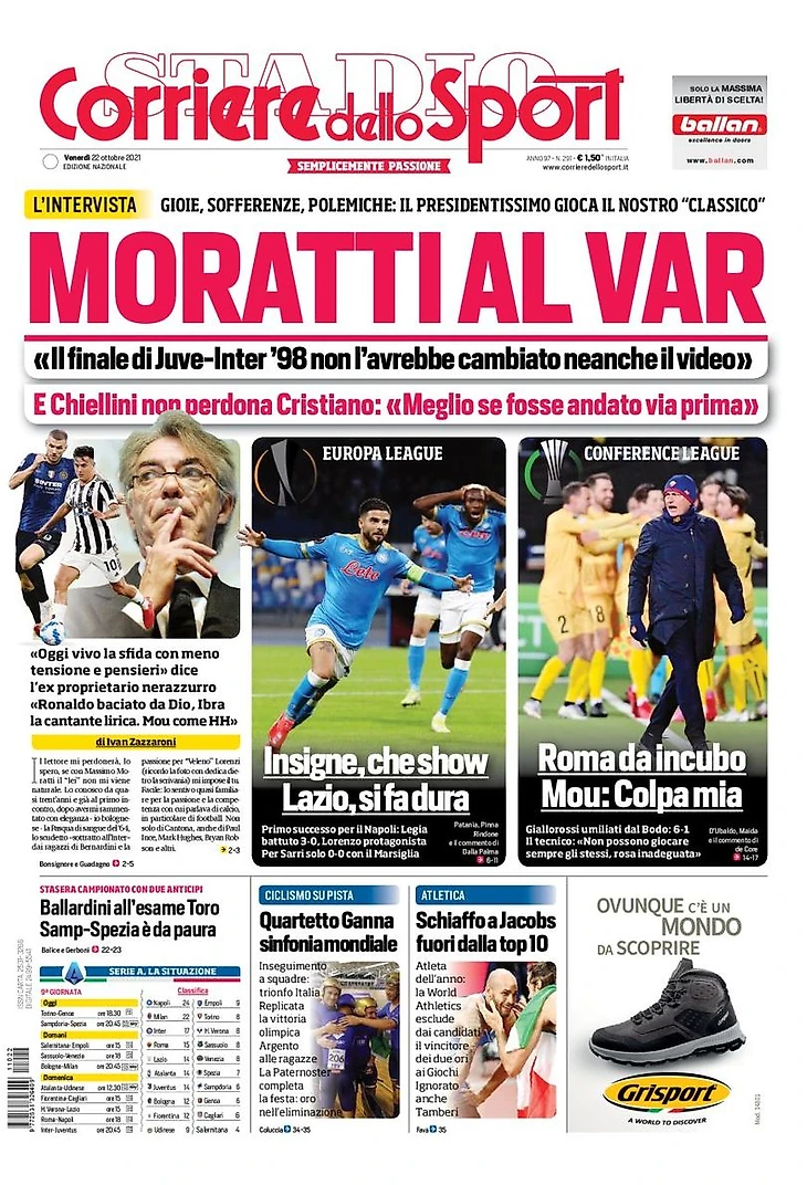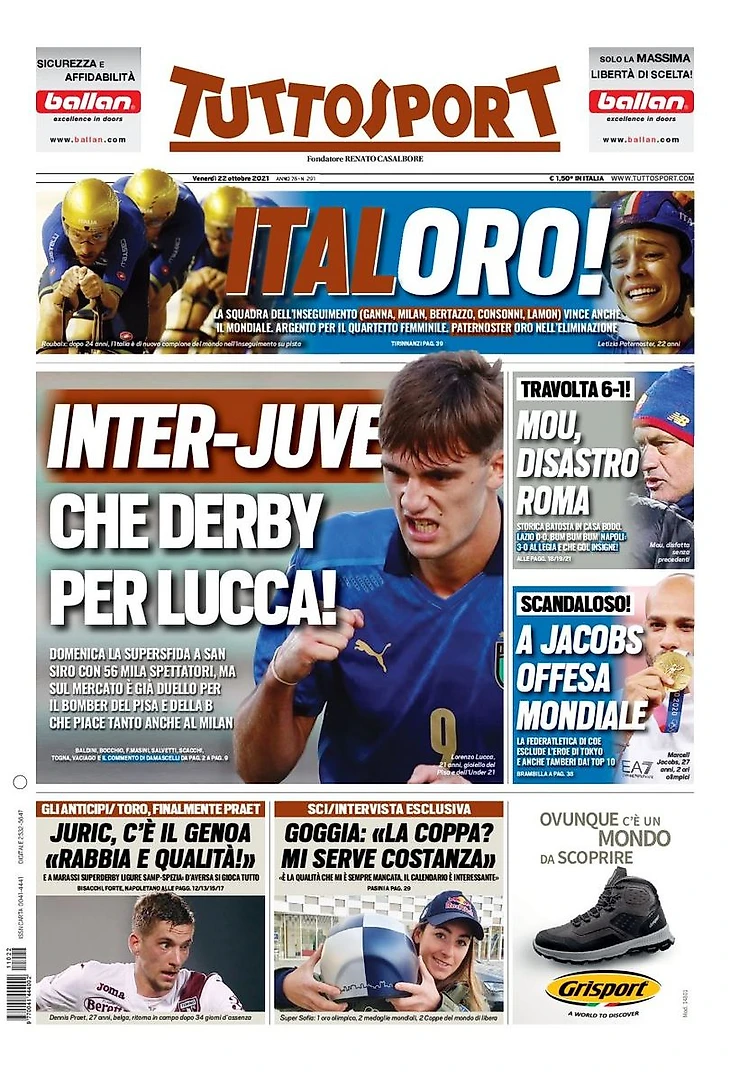 «Интер»-«Юве», каково дерби за Лукку. Заголовки Gazzetta, TuttoSport и Corriere за 22 октября
