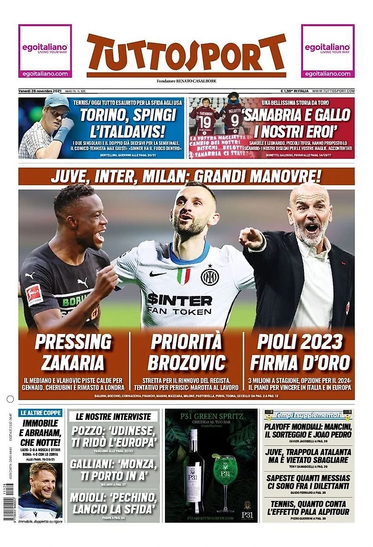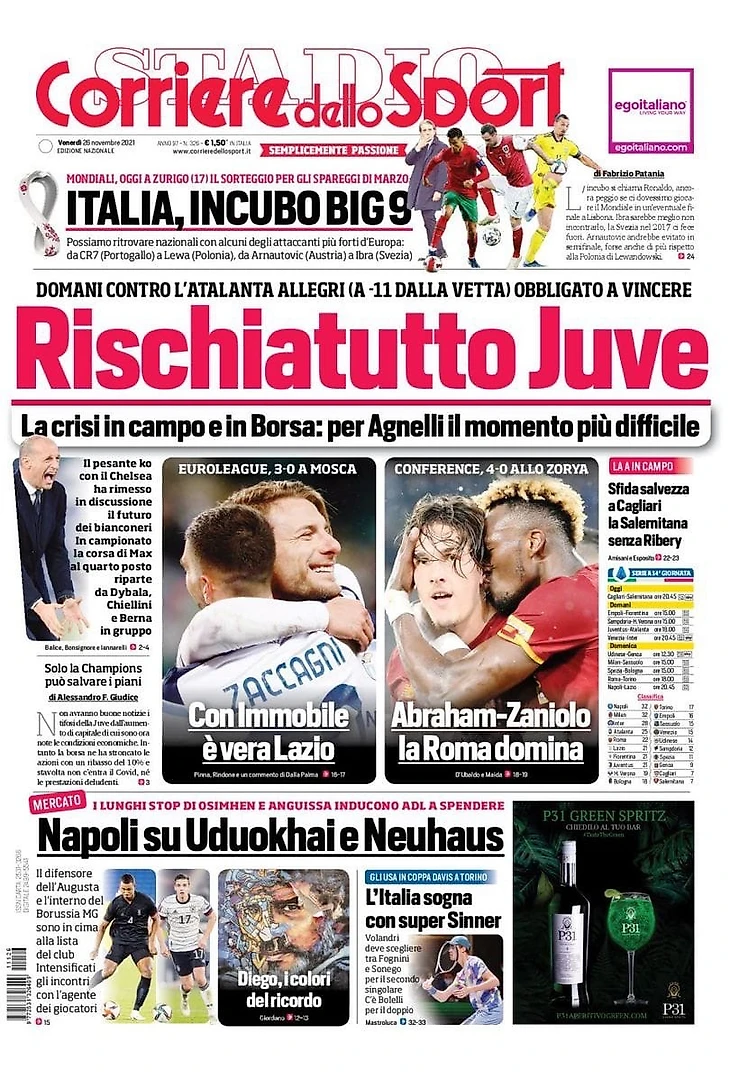 Рискни всем, «Юве». Заголовки Gazzetta, TuttoSport и Corriere за 26 ноября