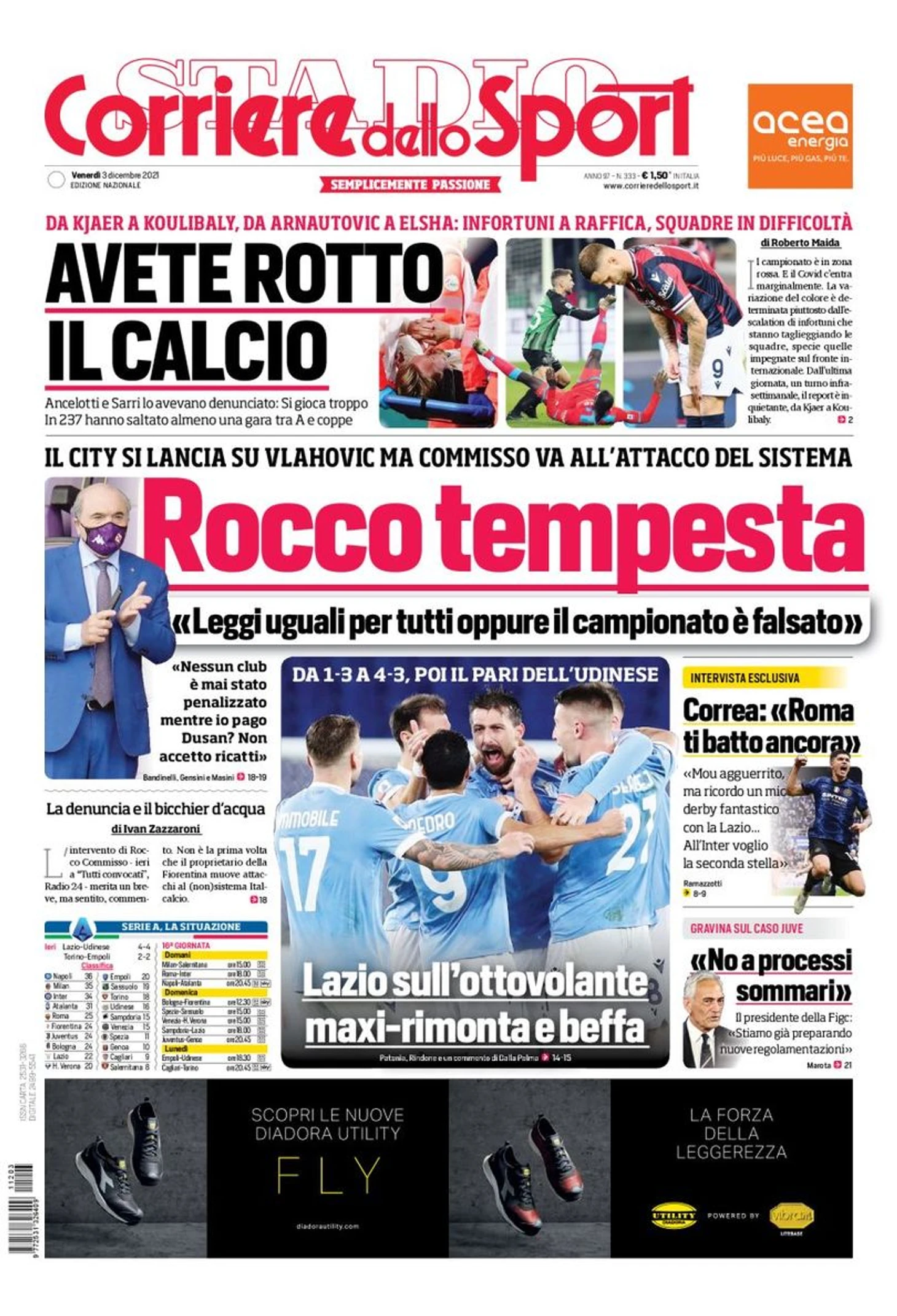 Интервью Коммиссо о ситуации с Влаховичем, ничьи «Торино» с «Эмполи» и «Лацио» с «Удинезе», а также травмы Кьера и Кулибали – в утреннем обзоре заголовков итальянских спортивных изданий в блоге «В гостях у Кальчо».
