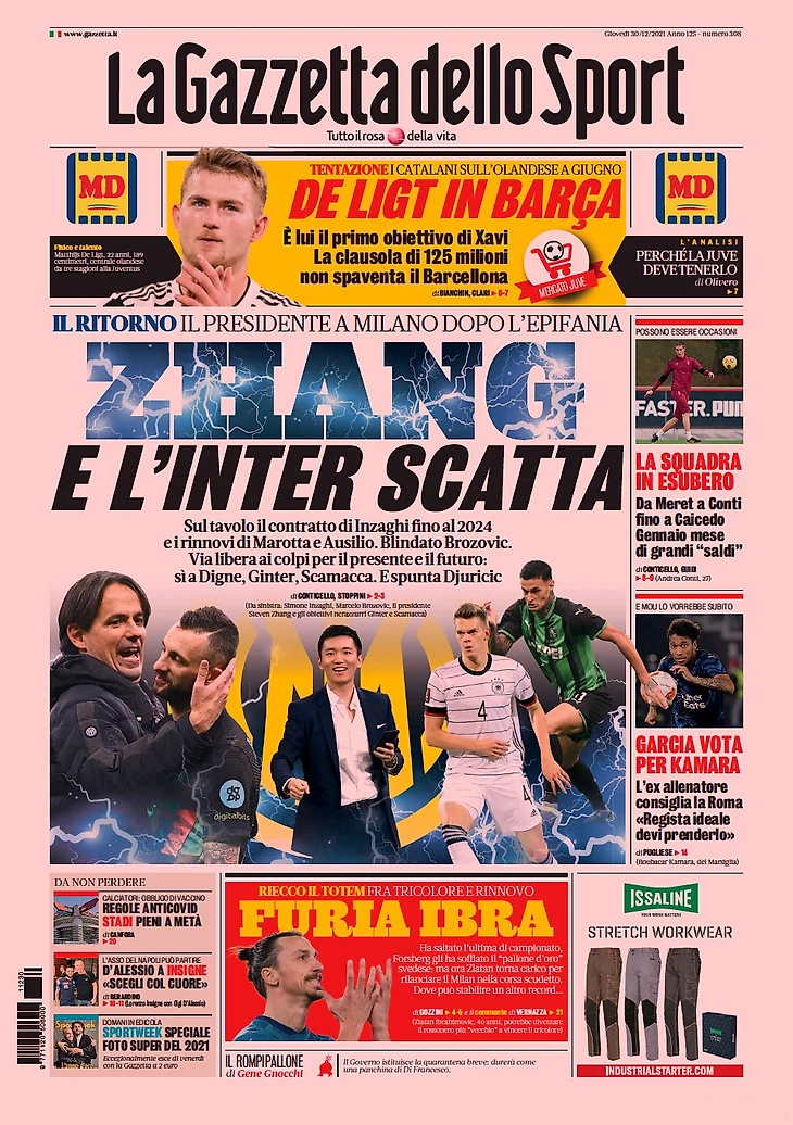 Чжэн, и «Интер» включается. Заголовки Gazzetta, TuttoSport и Corriere за 30 декабря
