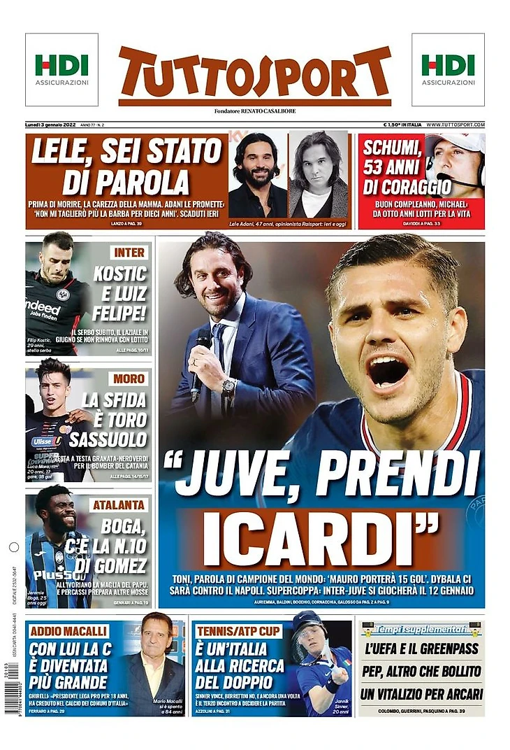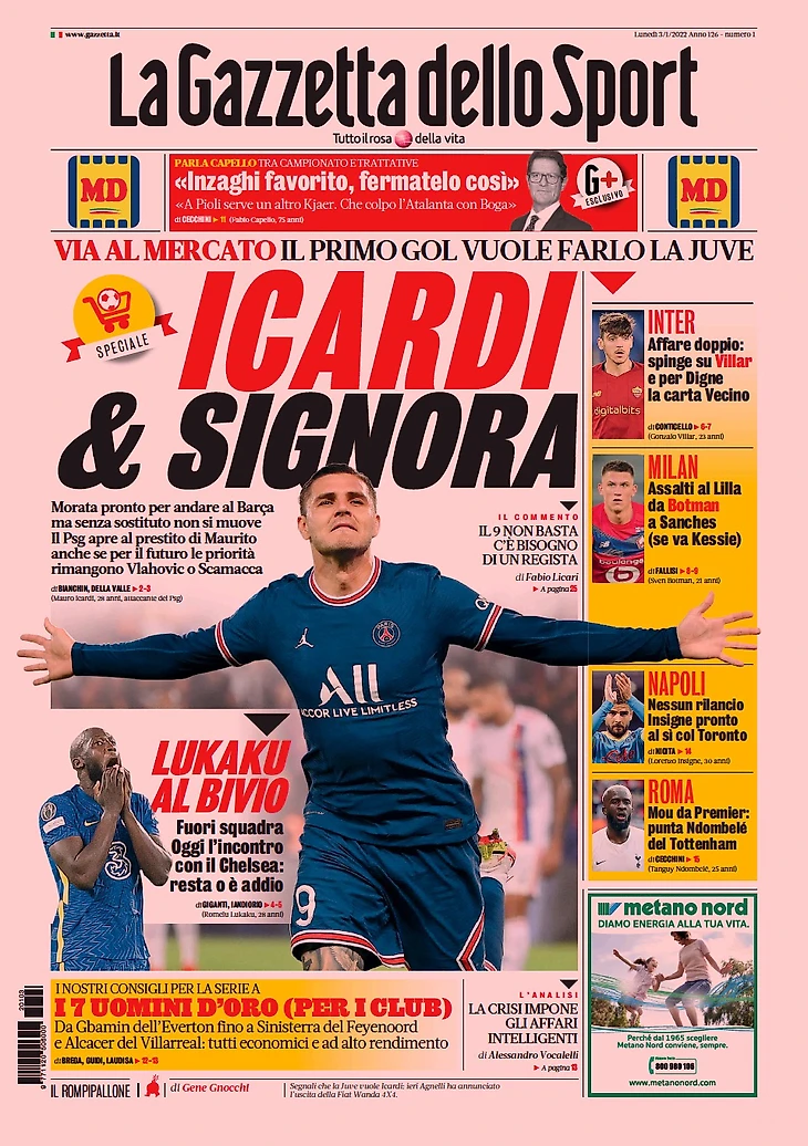 Икарди и Синьора. Заголовки Gazzetta, TuttoSport и Corriere за 3 января