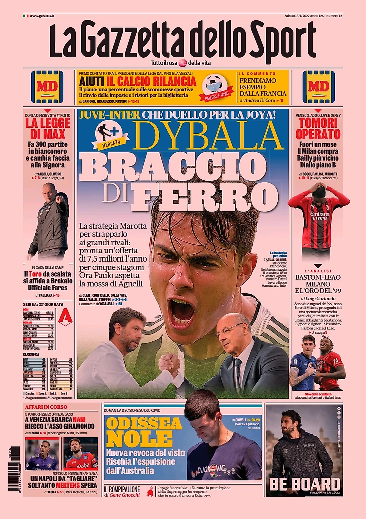 Влахович, схватка с Дибалой. Заголовки Gazzetta, TuttoSport и Corriere за 15 января