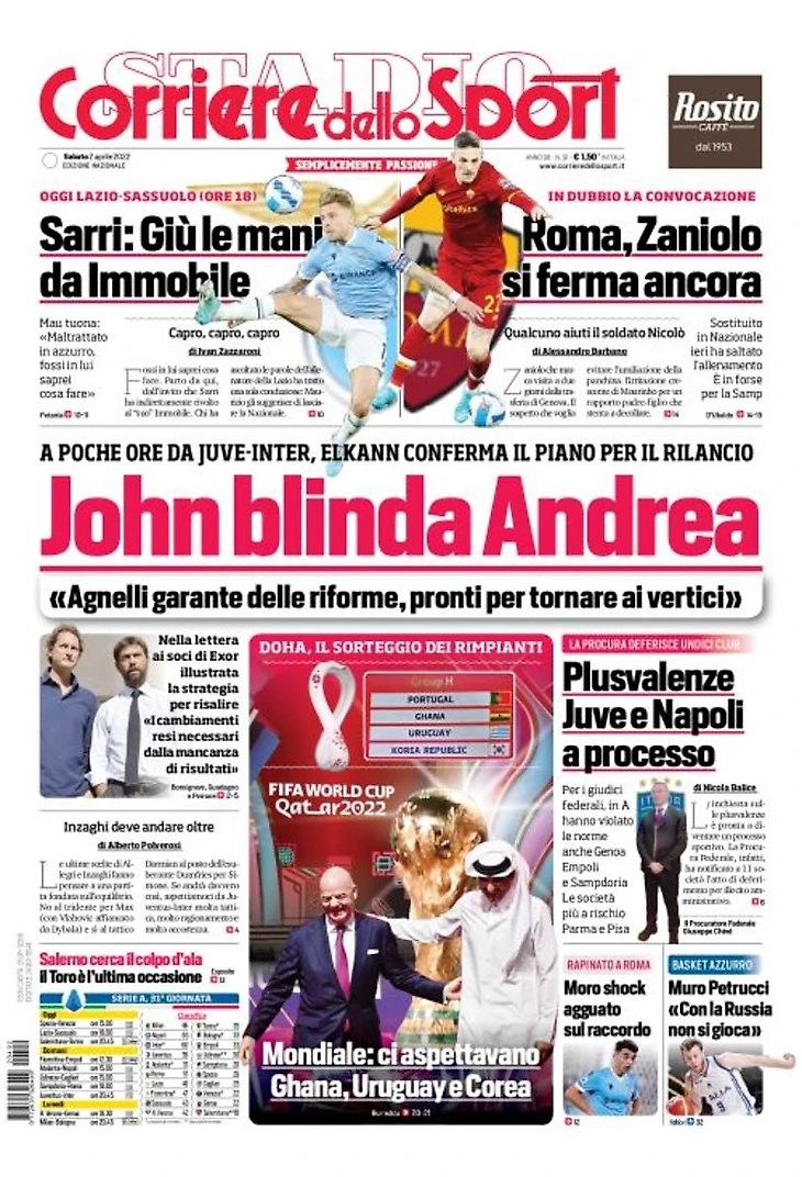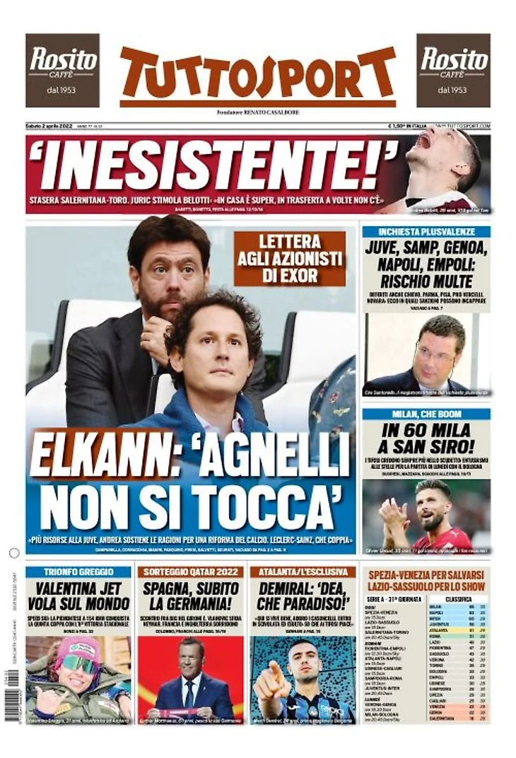 TuttoSport в свою очередь дал более броский заголовок «Элканн: «Аньелли неприкасаем»: «Письмо акционерам Exor: «Больше ресурсов «Юве», Андреа указывает на причины для реформы футбола. Леклер-Сайнс, какова пара».