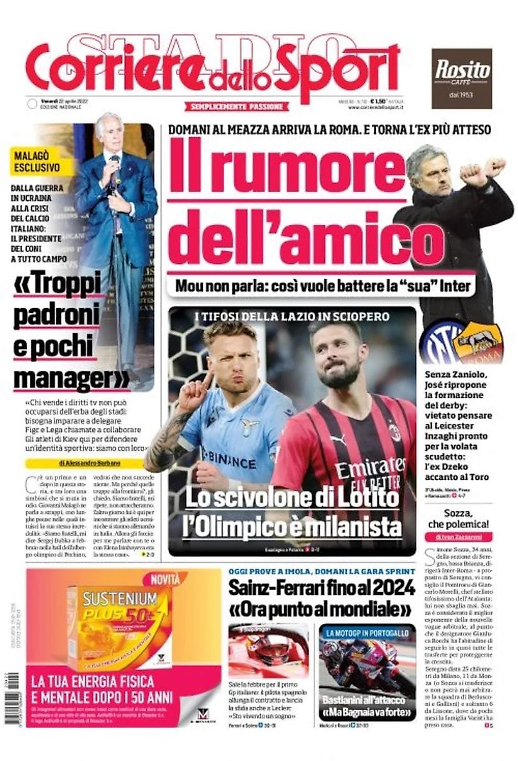 Corriere: «Слухи от друга»: «Завтра на «Меацца» приедет «Рома». И вернётся самый ожидаемый бывший. Маур не говорит: так он хочет победить «свой» «Интер». Без Дзаньоло, Жозе снова предлагает состав из дерби: нужно избежать мыслей о «Лестере». Индзаги готов к полёту за Скудетто: бывший Джеко вместе с «Быком».
