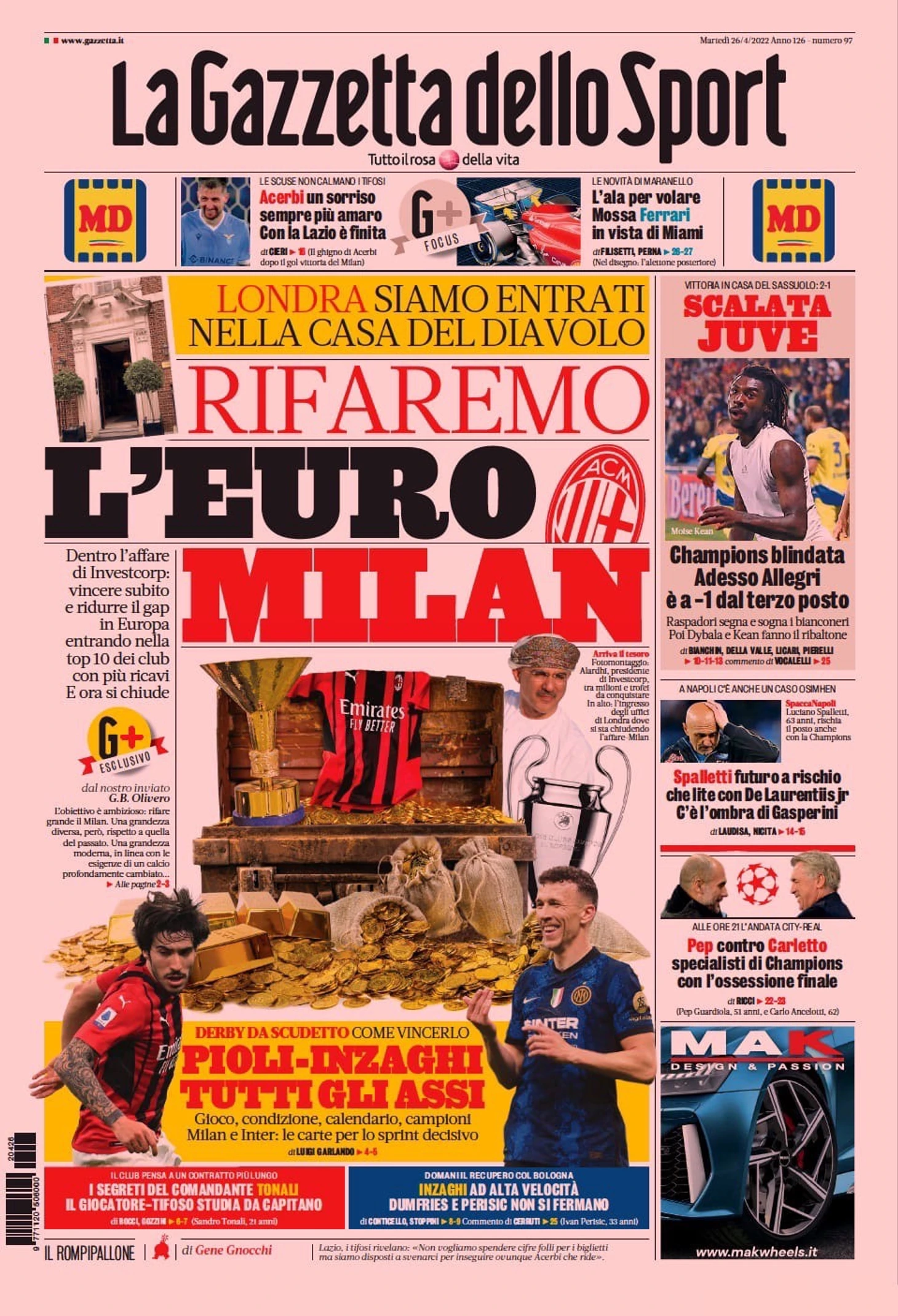 Победа «Юве» над «Сассуоло», сделка по продаже «Милана», а также сегодняшний полуфинал Лиги Чемпионов – в обзоре заголовков итальянских спортивных изданий в блоге «В гостях у Кальчо».