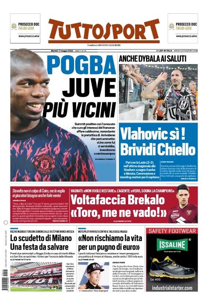Ничья «Юве» с «Лацио» и прощание с Кьеллини и Дибалой, переговоры по Погба и другим игрокам, а также время матчей последнего тура – в обзоре заголовков итальянских спортивных изданий в блоге «В гостях у Кальчо».