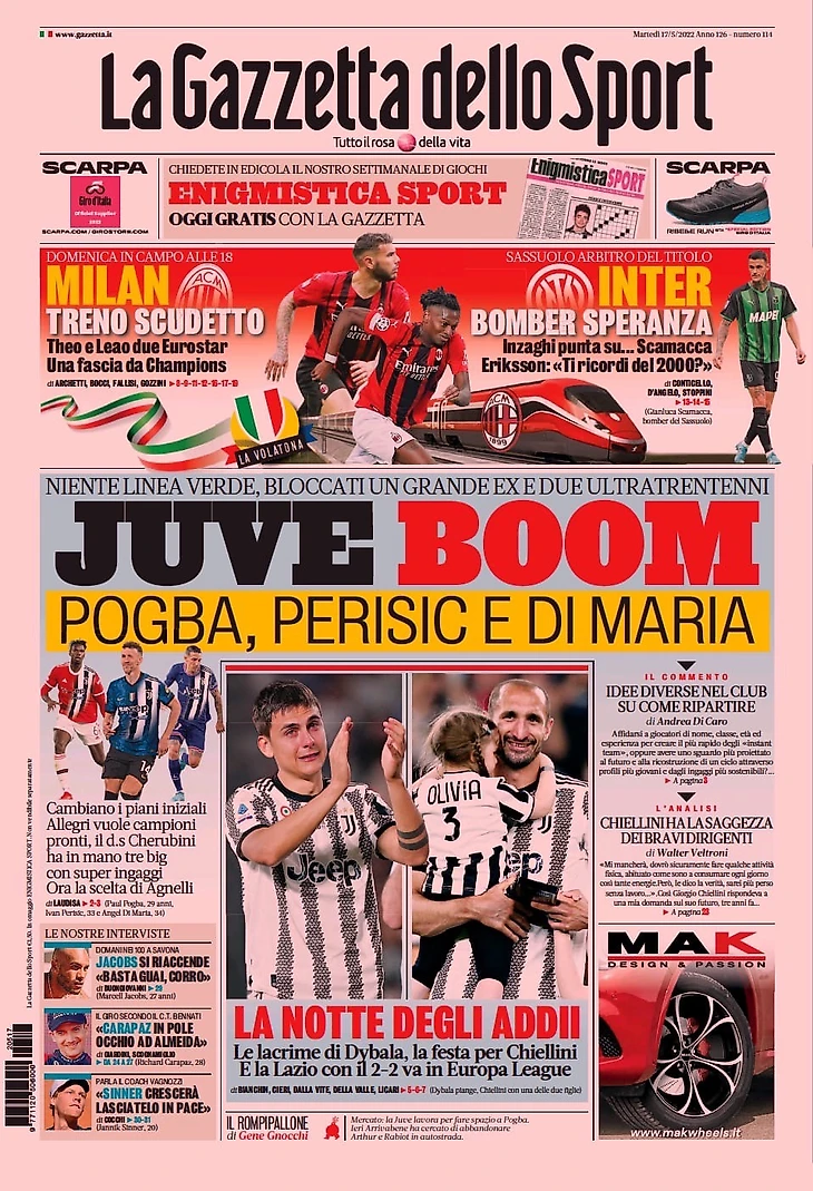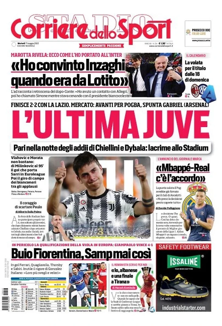 Последний «Юве». Заголовки Gazzetta, TuttoSport и Corriere за 17 мая