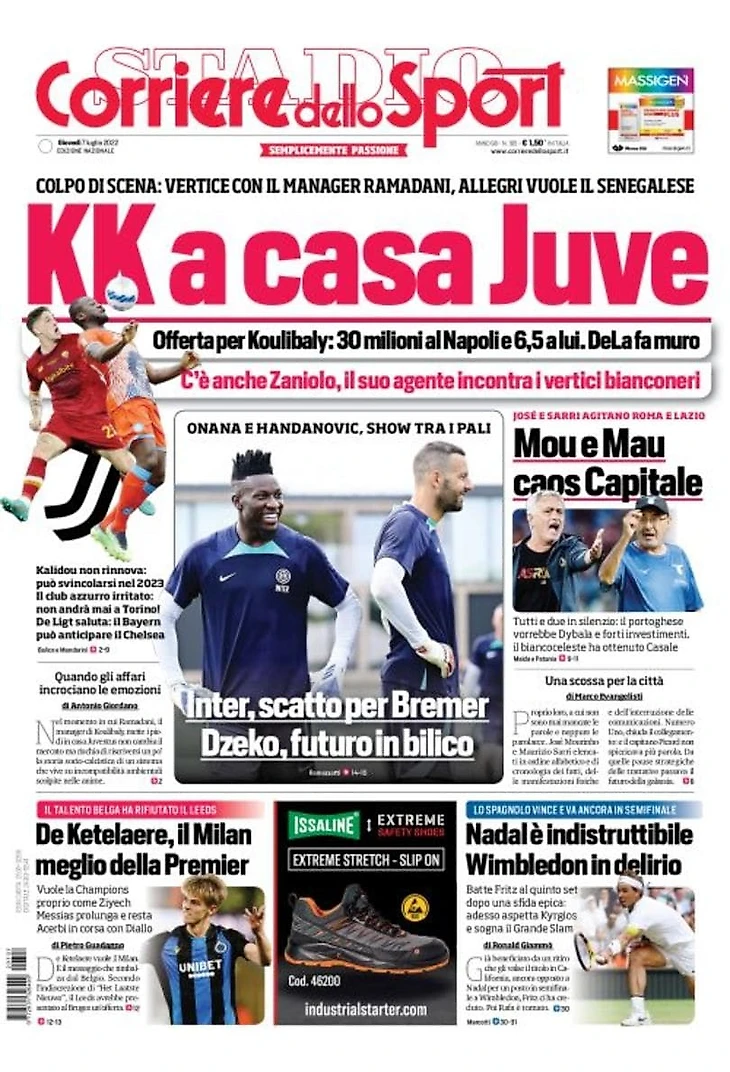 Подробности: совещание с агентом Рамадани, Аллегри хочет заполучить сенегальца. Предложение по Кулибали: 30 миллионов для «Наполи» и 6,5 для него. ДеЛа возводит стену. Калиду не продлевает контракт: он может уйти бесплатно в 2023. Клуб Адзурри взбешён: он никогда не переедет в Турин! Де Лигт прощается: «Бавария» может обойти «Челси».